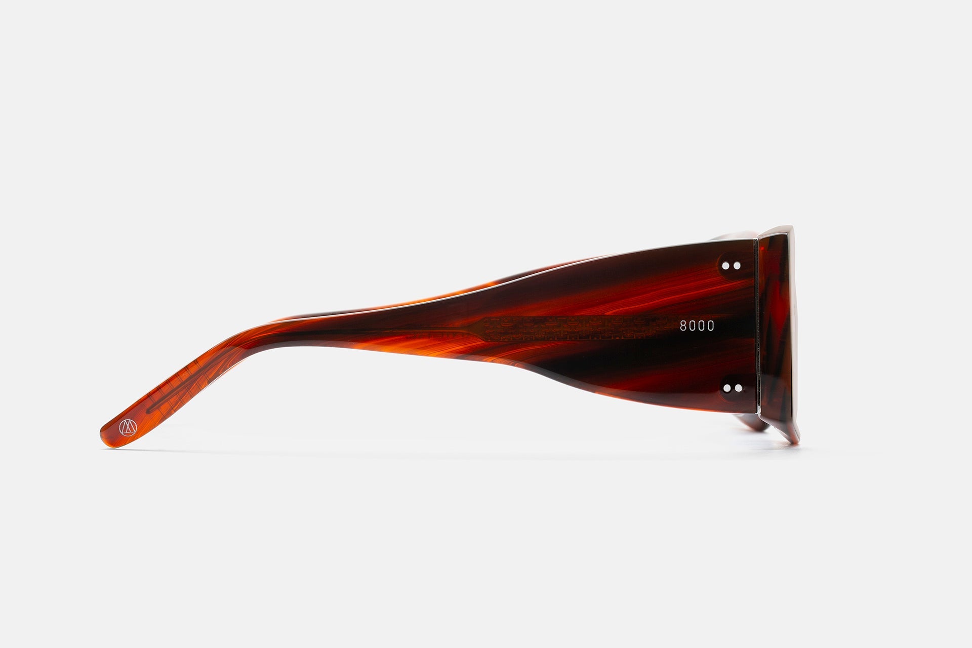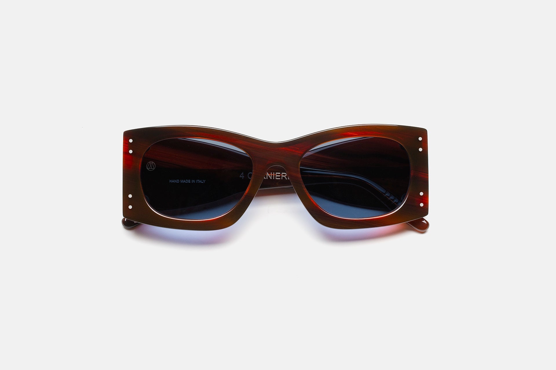 Creada para la exclusiva marca italoamericana Ottomila, 4 Cerniere es una pieza de gafas de vanguardia que eleva la simplicidad atemporal a un estilo contemporáneo icónico. 4 Cerniere significa 4 bisagras en italiano, esta característica única refuerza la estructura y permite una alineación perfecta entre las patillas y el frente de las gafas. El modelo cuenta con lentes anchas y cuadradas y bordes de acetato gruesos con puntas de patillas geométricas, concebidas como un cruce entre el glamour de los años 50 y la masculinidad atrevida. La robusta construcción del modelo se ha tallado en el interior de la montura, dando como resultado una pieza de alta gama. Esta versión se presenta en un clásico acetato habano a rayas y con lentes de color azul intenso.