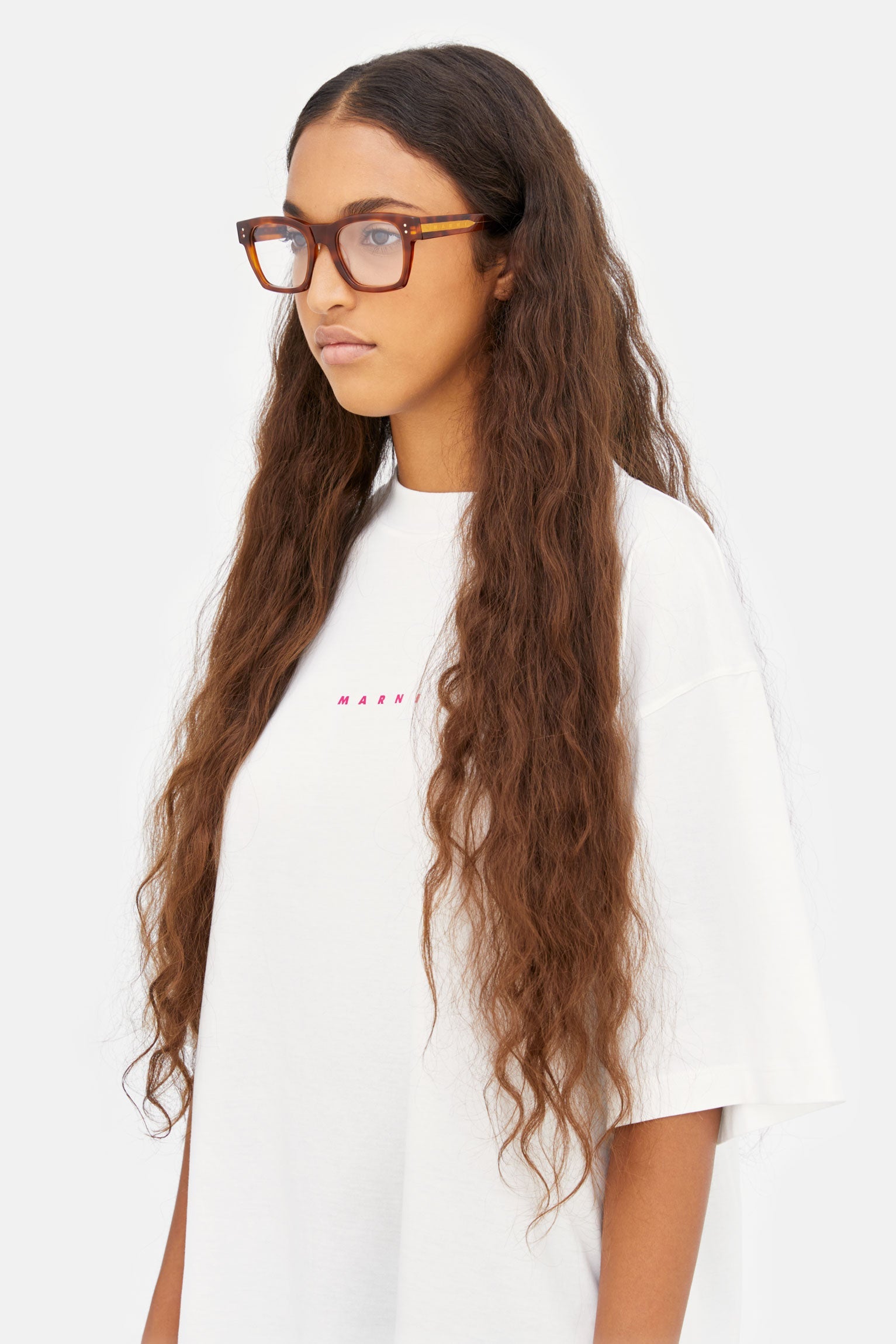 Diseñado exclusivamente para Marni, Abiod es una nueva interpretación de las clásicas gafas cuadradas.Presenta bordes gruesos y puntas gruesas de acetato con una línea superior del marco cuidadosamente curvada y detalles metálicos.Abiod captura la estética intelectual y peculiar de Marni en unas gafas funcionales y cotidianas.Este modelo se presenta en acetato Habana claro.
