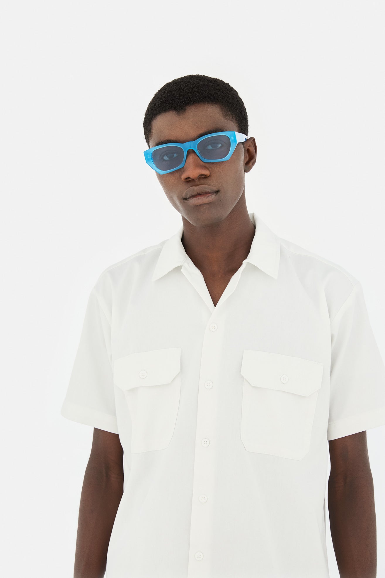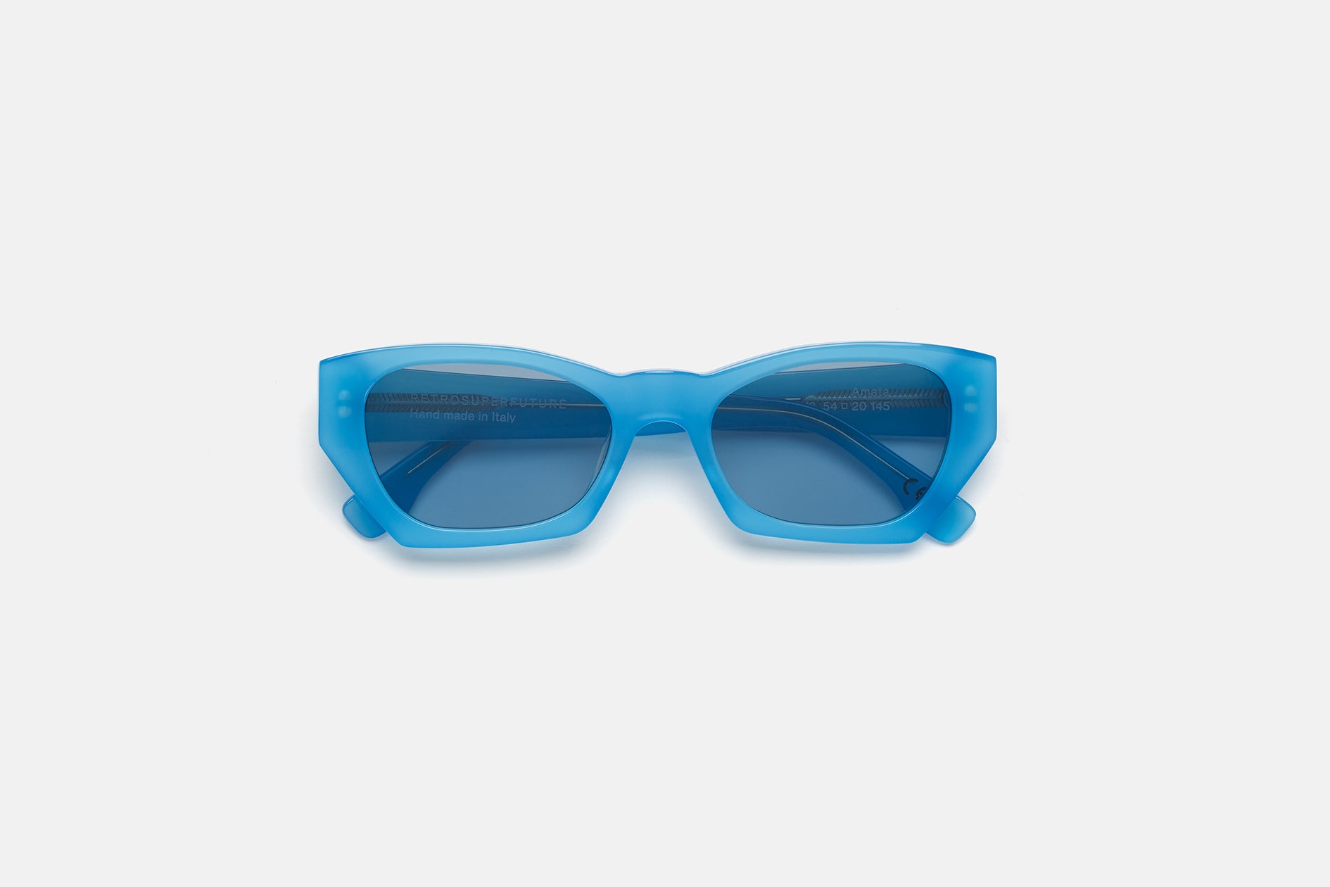 Acetato de alta calidad en un vibrante color azul anís. Lentes azules tono sobre tono con base 2. Gafas de alta gama diseñadas en Milán, Italia.