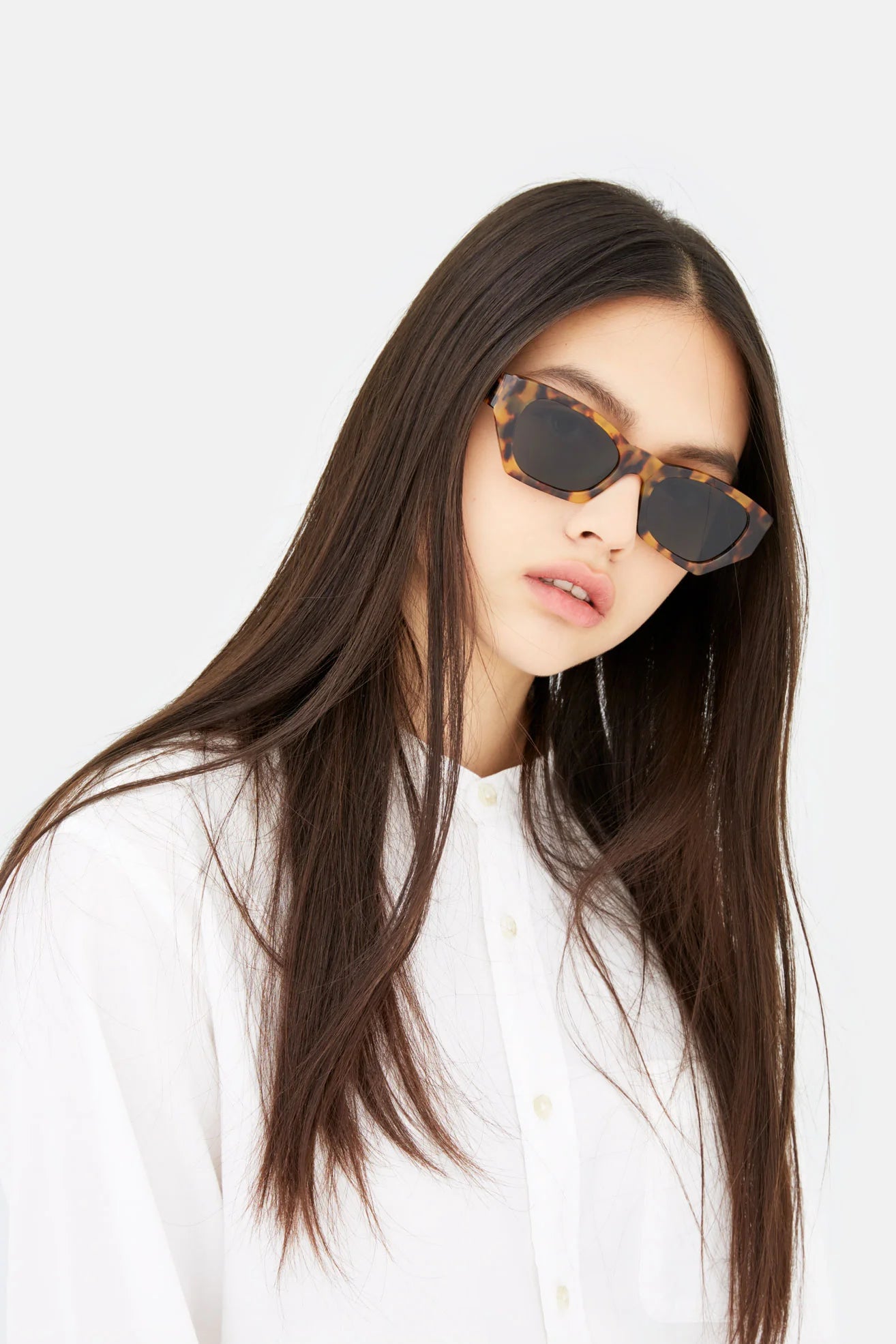 Amata, un modelo contemporáneo y nítido, es un marco de vanguardia que se caracteriza por su elegante contorno geométrico único.Una versión vanguardista de los marcos atemporales de la década de 1960, la silueta de conducción rápida del modelo presenta varillas resistentes, líneas rectas y un atrevido puente nasal.Esta versión de Amata viene en acetato Havana hablado y lentes negros.La caja contiene un estuche semiduro y un paño de limpieza.