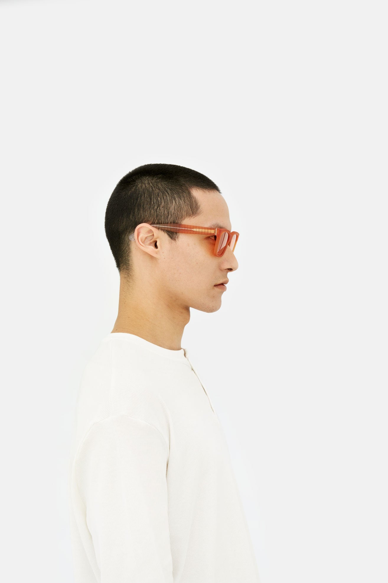Diseñada para A Cold Wall, esta versión de Estados Unidos captura el enfoque arquitectónico y conceptual del estilo definido por la icónica marca británica.El modelo fusiona visiones futuristas, con sus detalles grabados con láser, con un enfoque de estilo más estético.El diseño geométrico americano se combinó con un frente de acetato de cristal, lentes en un tono en naranja.Las patillas, por otro lado, presentan diferentes capas de acabados de acetato: una capa de rejilla grabada con láser, una capa de cristal y una capa de naranja descolorido.
