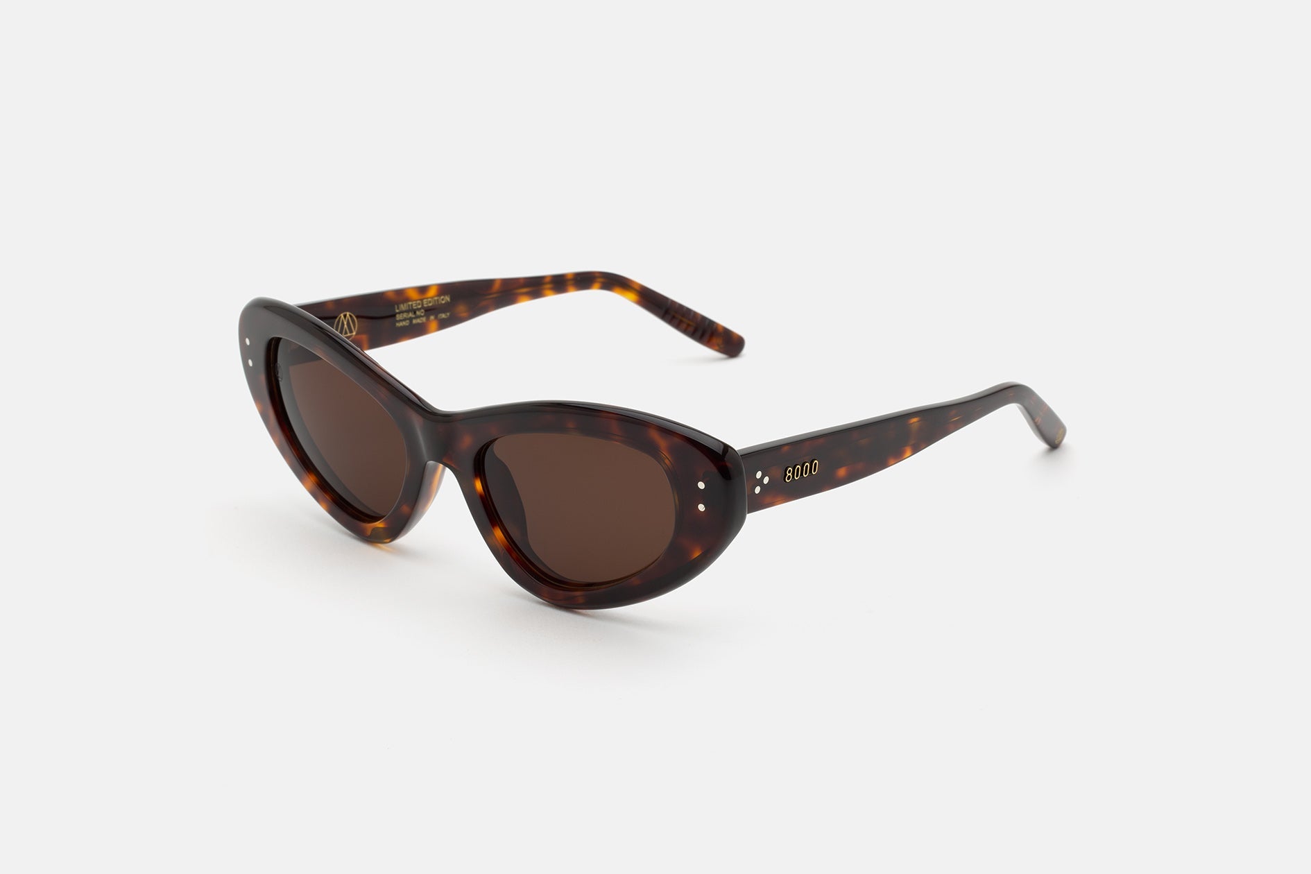 Creado para la marca italoamericana de alta gama Ottomila, Baleari es una silueta lúdica que captura el estilo icónico de la década de 1980.Elevada para una sensibilidad moderna más nítida, esta silueta de ojo de gato ovalada presenta bordes gruesos que enfatizan su materialidad y su forma cuidadosamente esculpida.Si bien tiene un carácter lúdico, Baleari presenta los distintivos acabados de lujo de Ottomila, como el logotipo de metal y los remaches hechos a mano.Esta versión viene en vibrante acetato Havana con lentes marrones.