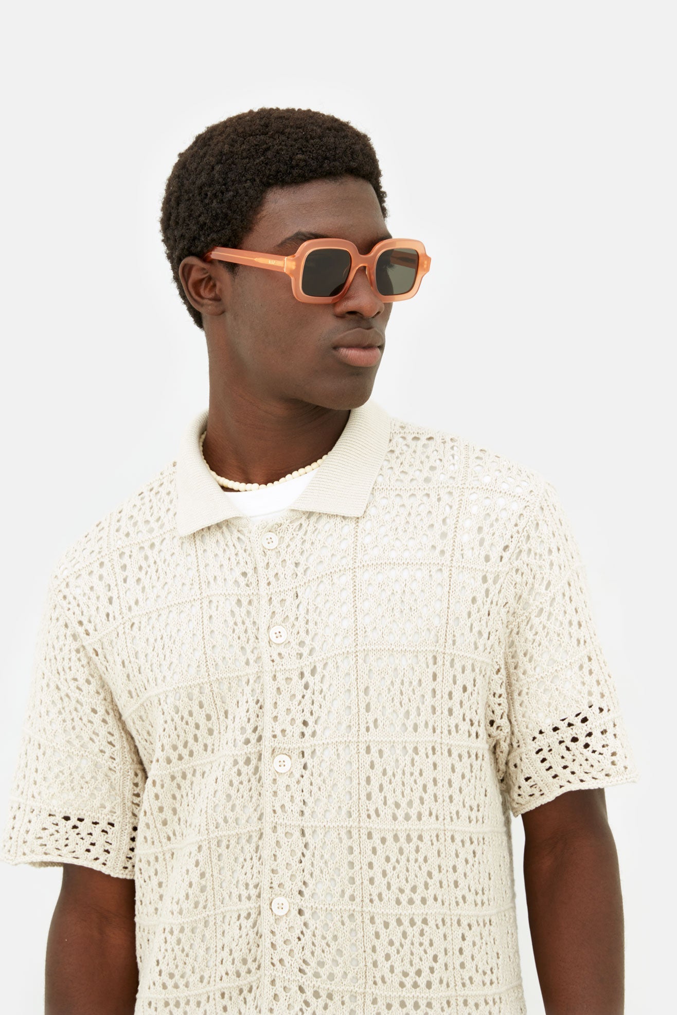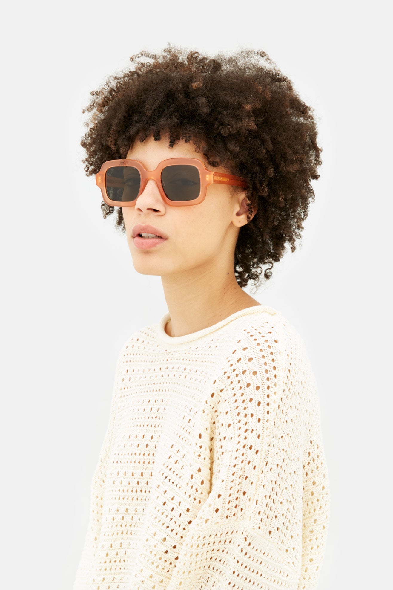 Benz es una silueta destacada que combina el estilo atemporal de los años 60 con los detalles contemporáneos. Con una montura suave y redondeada de gran tamaño, Benz captura el glamour clásico de la Riviera Mediterránea, actualizado con interiores cincelados para un diseño más ligero y moderno. La construcción del modelo parece mantecosa, suavizando sus pesados y atrevidos rasgos. Esta versión de Benz se presenta en un juguetón acetato cristalino de color melocotón con lentes tintadas en marrón.