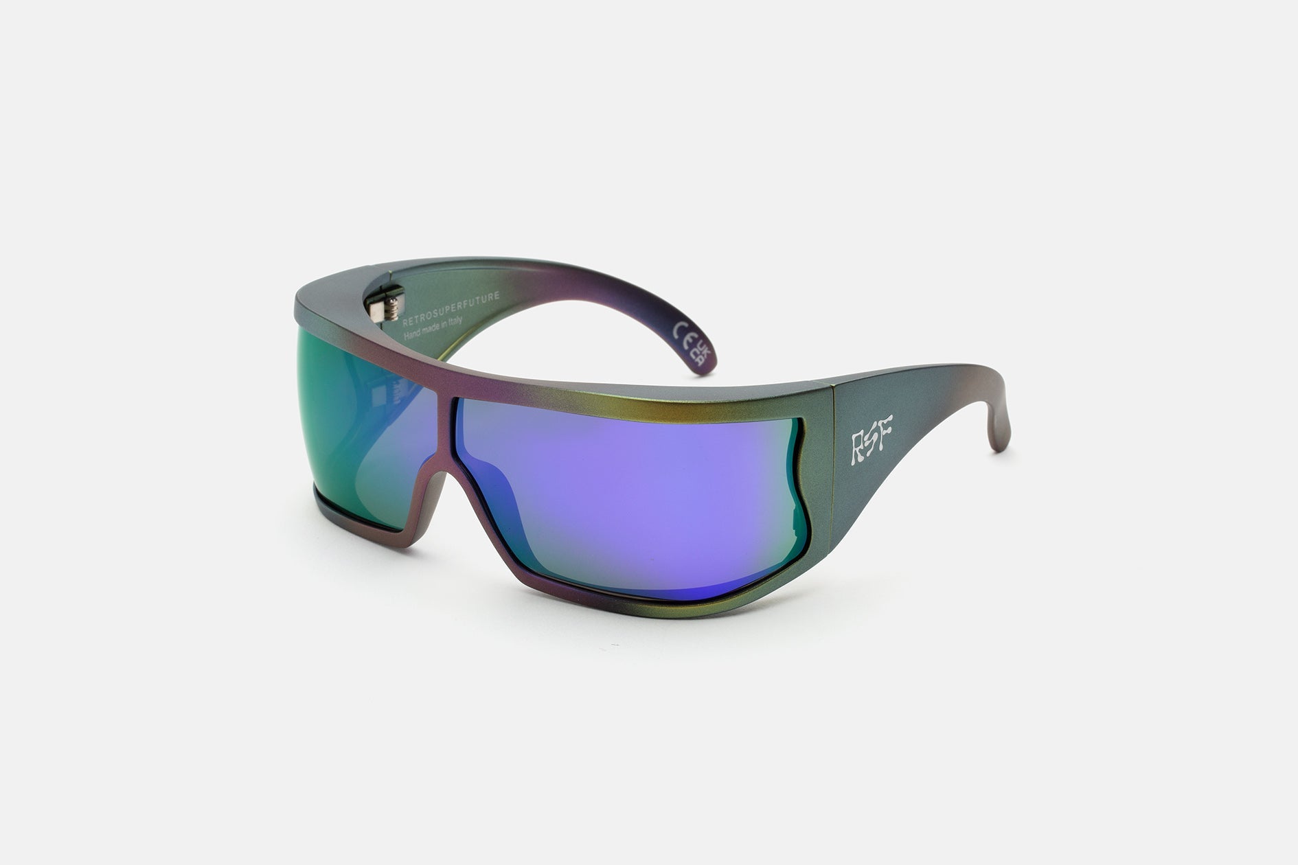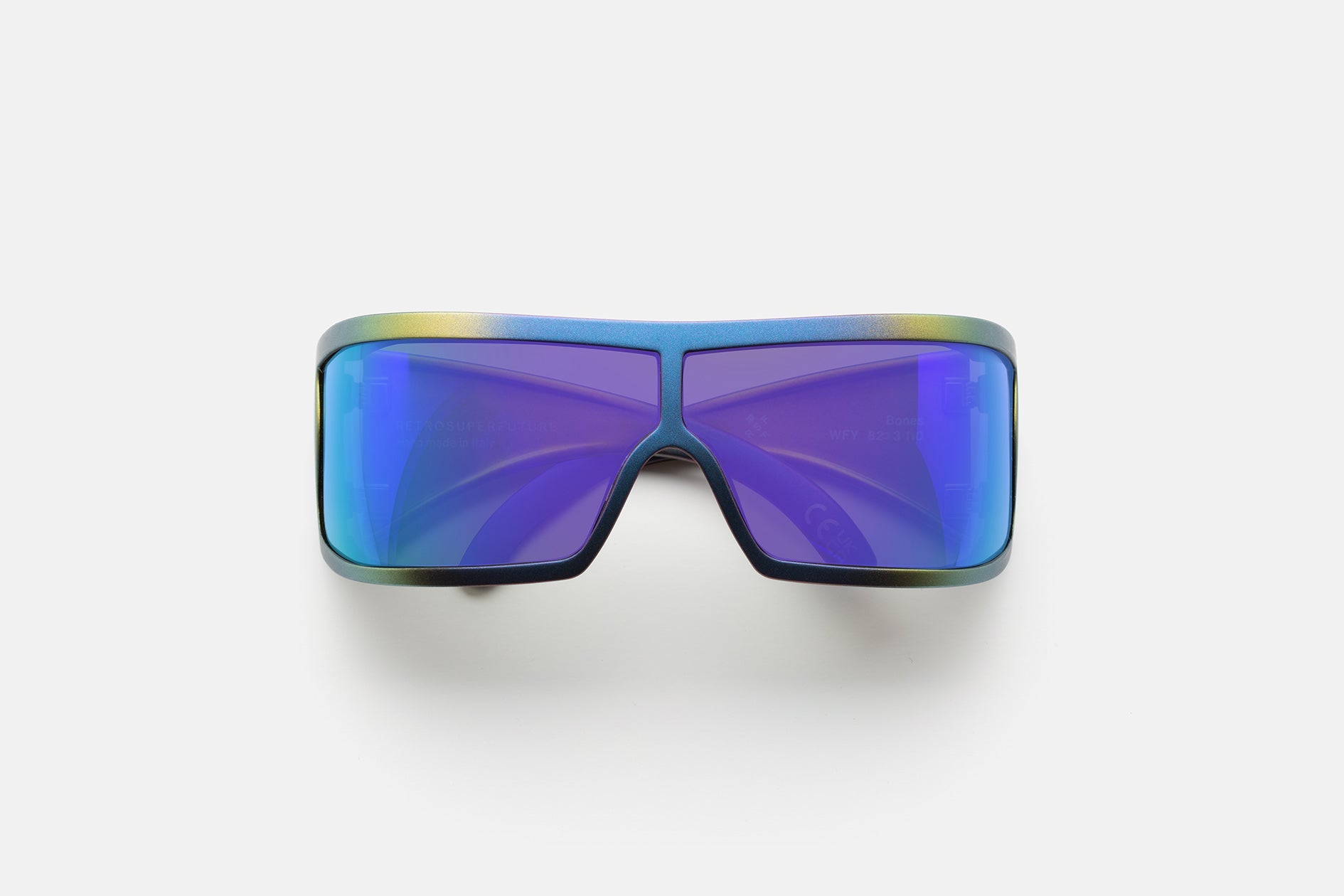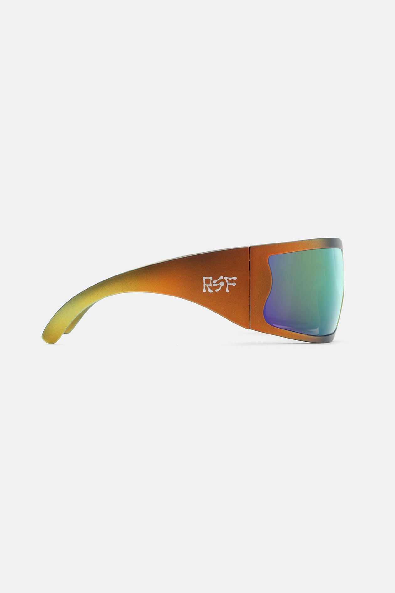 Bones es un híbrido único entre un escudo deportivo de gran tamaño, un marco de alta costura único y el sueño de un raver. La estructura gruesa pero funcionalmente ligera de los huesos está compuesta de material TR90. Este material termoplástico se utiliza comúnmente en gafas de rendimiento técnico debido a sus propiedades ultra resistentes y ultraligeras. Huesos es una pieza de gafas de muchas características fuertes, desde el TR90 como una elección de material, el diseño envolvente de gran tamaño con sus detalles curvos frescos a la selección de la lente. El objetivo es siempre el jugador clave en el juego de RSF, equilibrando la estética con la función. Huesos monta un extra especial, extra grande envoltura Carl Zeiss alrededor 'toric' escudo en una selección de sorprendentes acabados de espejo de colores. Disponible en una exclusiva TR90 con recubrimiento en polvo iridiscente mate con lentes espejadas multicolor a juego y detalles plateados.