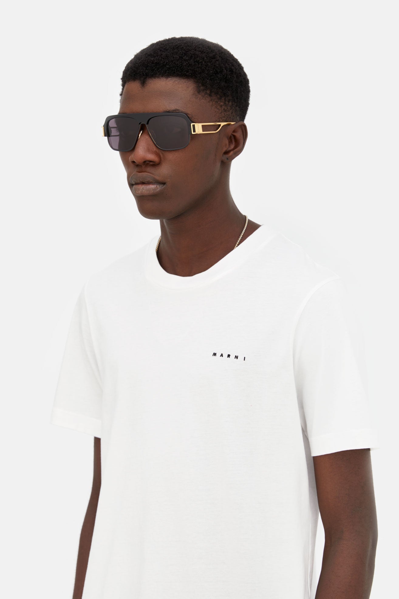 Diseñada exclusivamente para Marni, Burullus presenta una silueta fresca de acetato y metal, caracterizada por un ajuste oversize. Inspirada en la estética de los años 70, el modelo presenta un puente nasal recto y terminales de patilla más bajos, con la decoración metálica Marni moldeada a medida que se curva alrededor de los muselinas y las patillas. Sus amplias lentes están alojadas en marcos delgados y resistentes, contrastados con unas exclusivas patillas completamente metálicas. Este modelo es ligero pero impactante, disponible en un atemporal acetato negro, metal dorado y lentes negras.