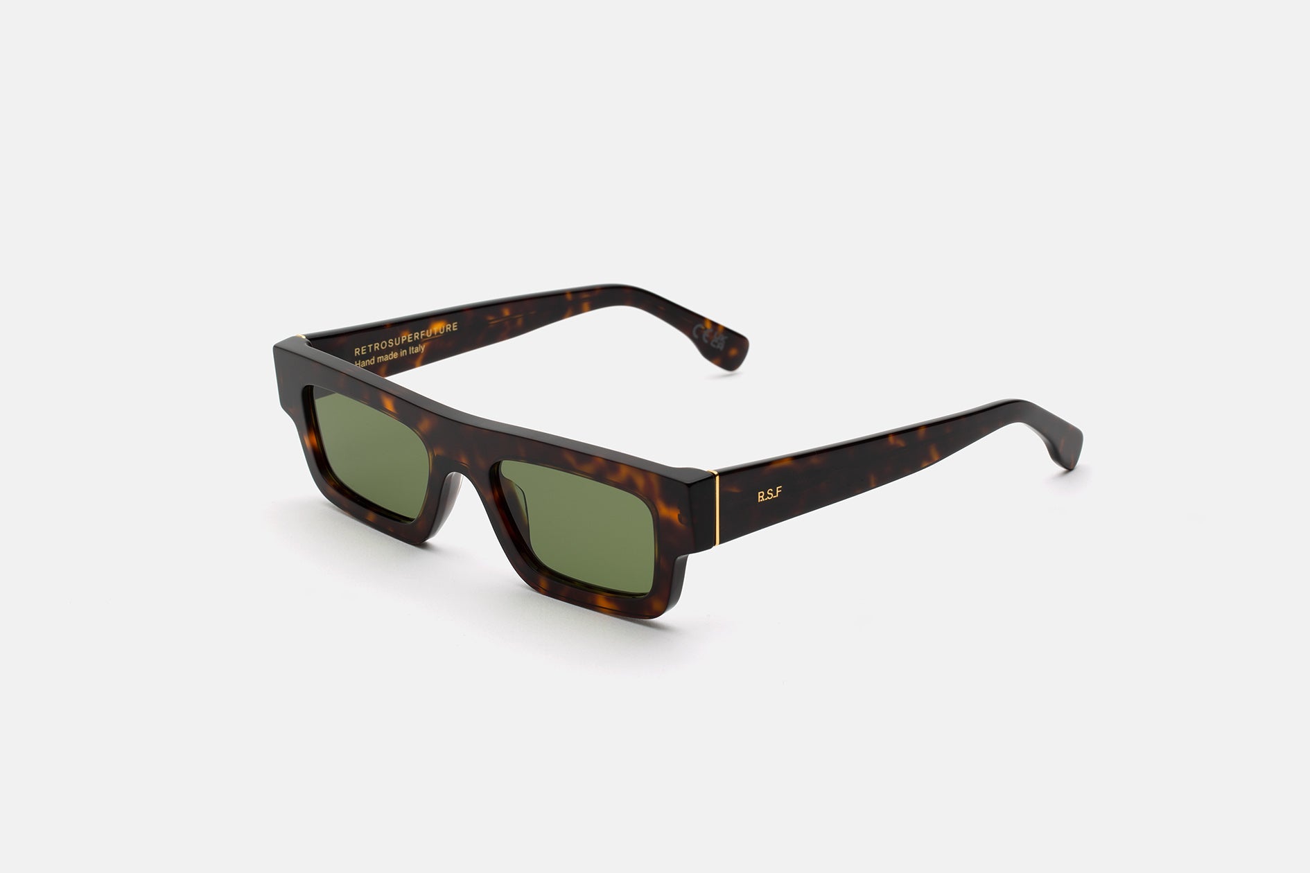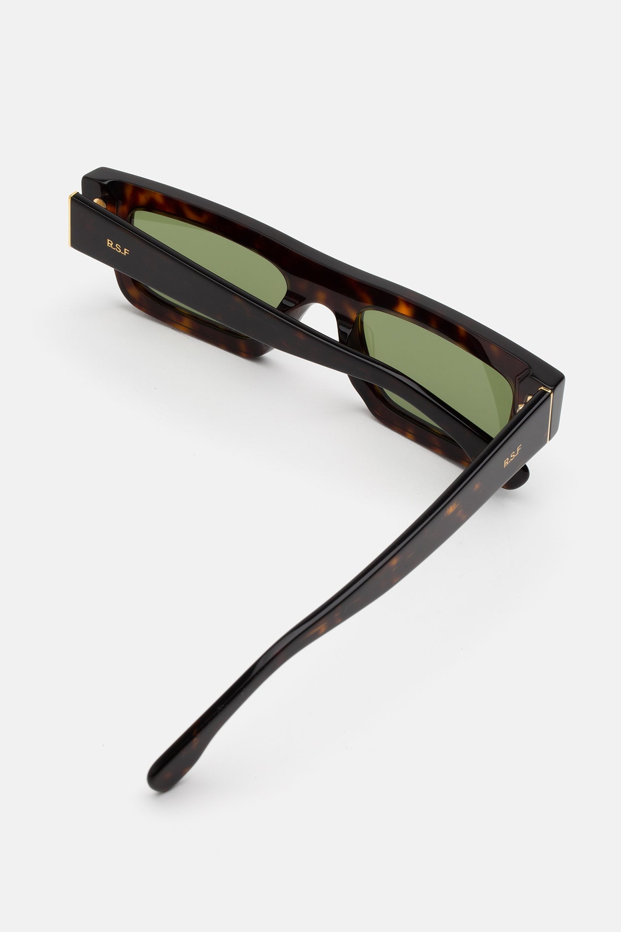 Colpo es una silueta contemporánea icónica que fusiona referencias vintage con el zeitgeist actual.Con su perfil bajo y compacto, Colpo se inspira tanto en las monturas gruesas de la década de 1960 como en las visiones futuristas de la cultura streetwear.Su línea de frente recta y afilada hace de este un anteojo de declaración.Esta versión de Colpo se presenta en un elegante acetato havana oscuro y lentes verde botella.