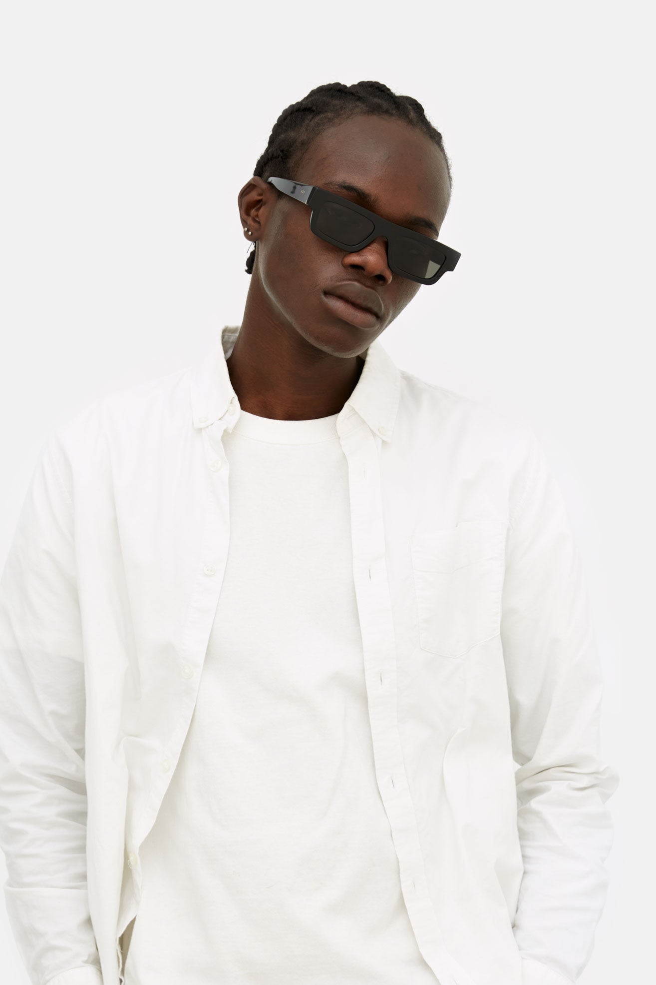 Colpo es una silueta icónica contemporánea que fusiona las referencias vintage con el zeitgeist actual. Con su perfil bajo y compacto, Colpo se inspira tanto en las gruesas monturas de los años 60 como en las visiones futuristas. Su línea de cejas recta y afilada la convierte en una pieza de referencia. Colpo será el modelo omnipresente y destacado de la temporada, visto en las calles de Milán y París, Nueva York y Tokio. Esta versión de Colpo se presenta con un acetato negro brillante y lentes a juego.