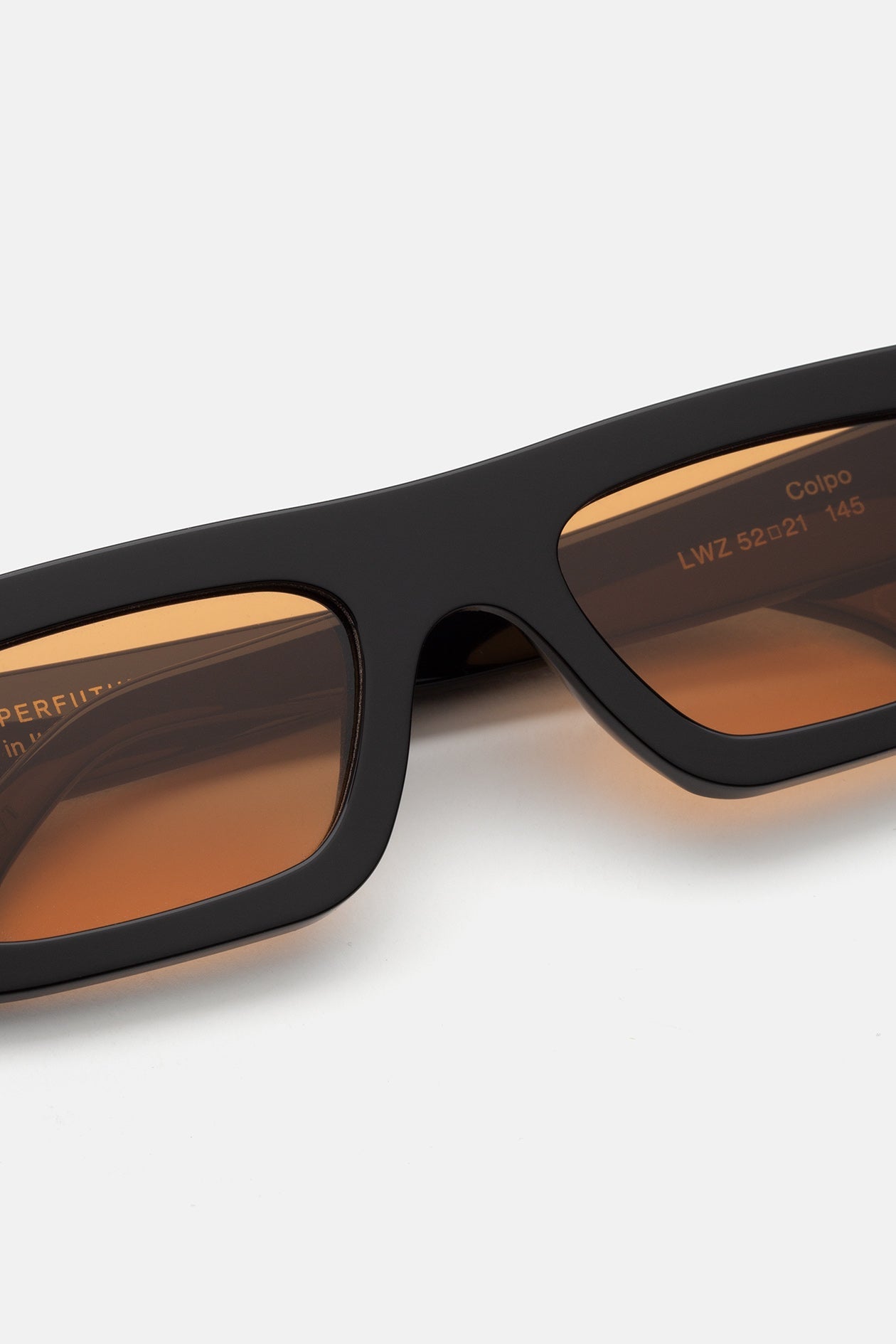 Colpo es una silueta contemporánea icónica que fusiona referencias vintage con el zeitgeist actual.Con su perfil bajo y compacto, Colpo se inspira tanto en las monturas gruesas de la década de 1960 como en las visiones futuristas de la cultura streetwear.Su línea de frente recta y afilada hace de este un anteojo de declaración.Esta versión de Colpo viene en un atemporal acetato negro brillante combinado con un refinado conjunto de lentes de color marrón cálido.