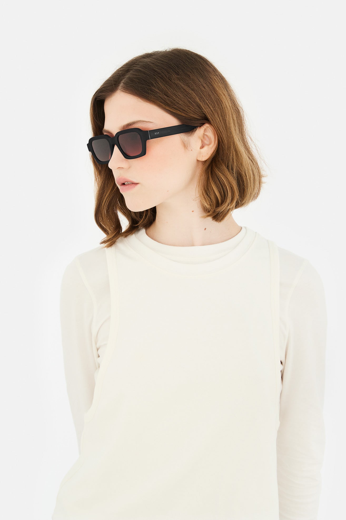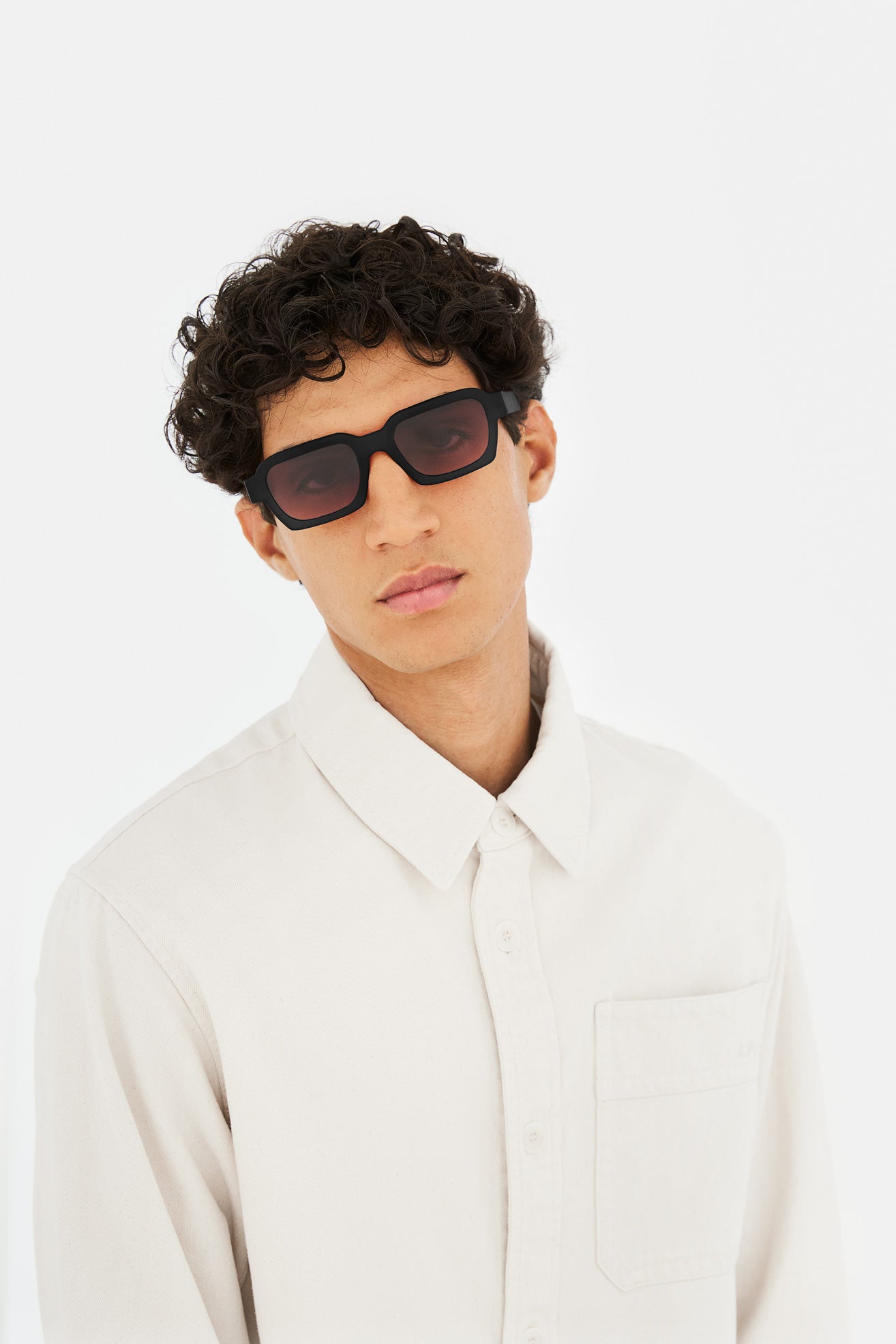 El estilo elegante y vanguardista de Caro se presenta en una nueva línea, compuesta por colores mate intensos para crear una atmósfera de puesta de sol sin fin. La clásica referencia grunge se transforma en una paleta mate suave y colorida, con su diseño icónico, marco de acetato resistente y patillas cuadradas. Esta versión de Caro está disponible en un negro mate intenso ultra suave con lentes color morado