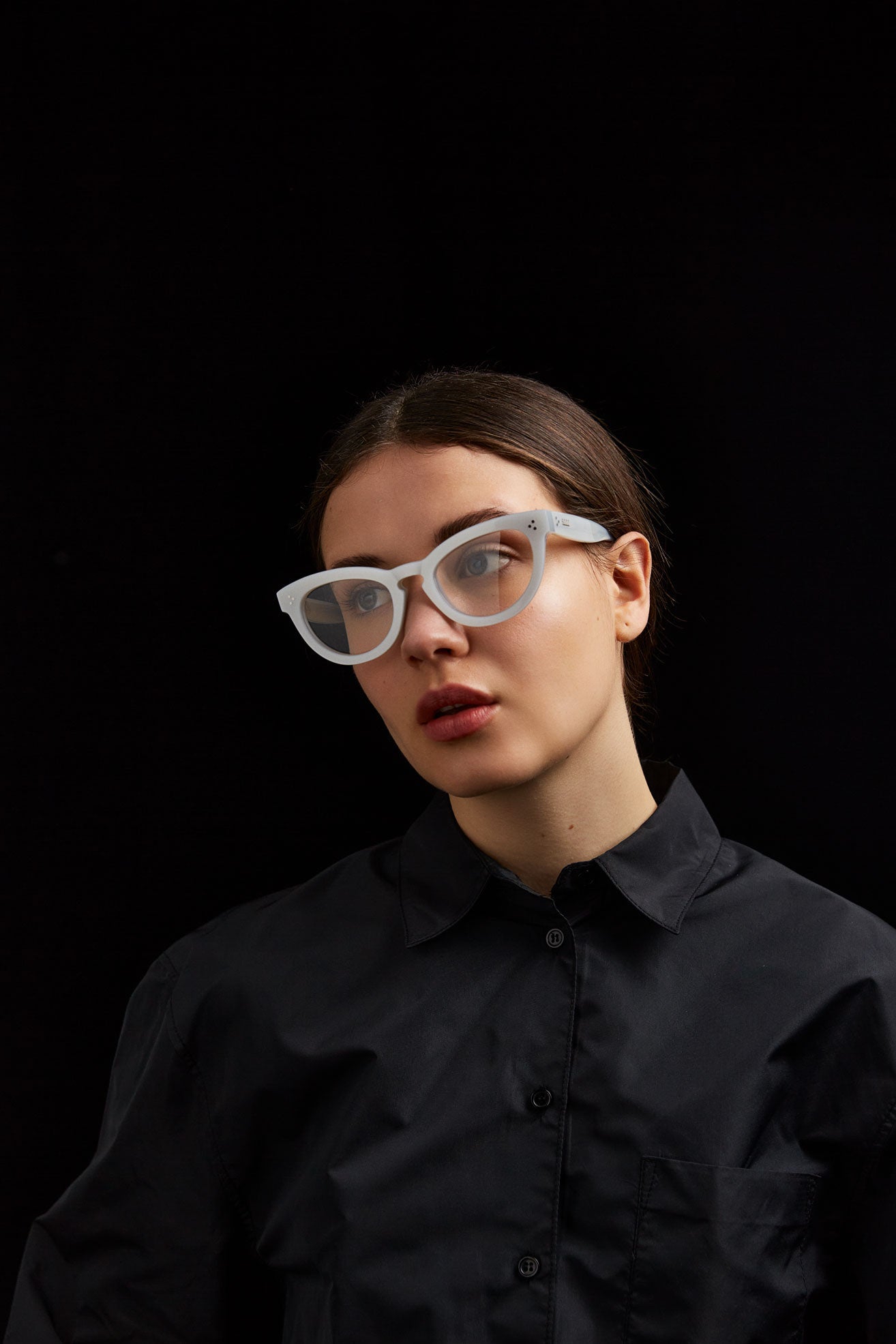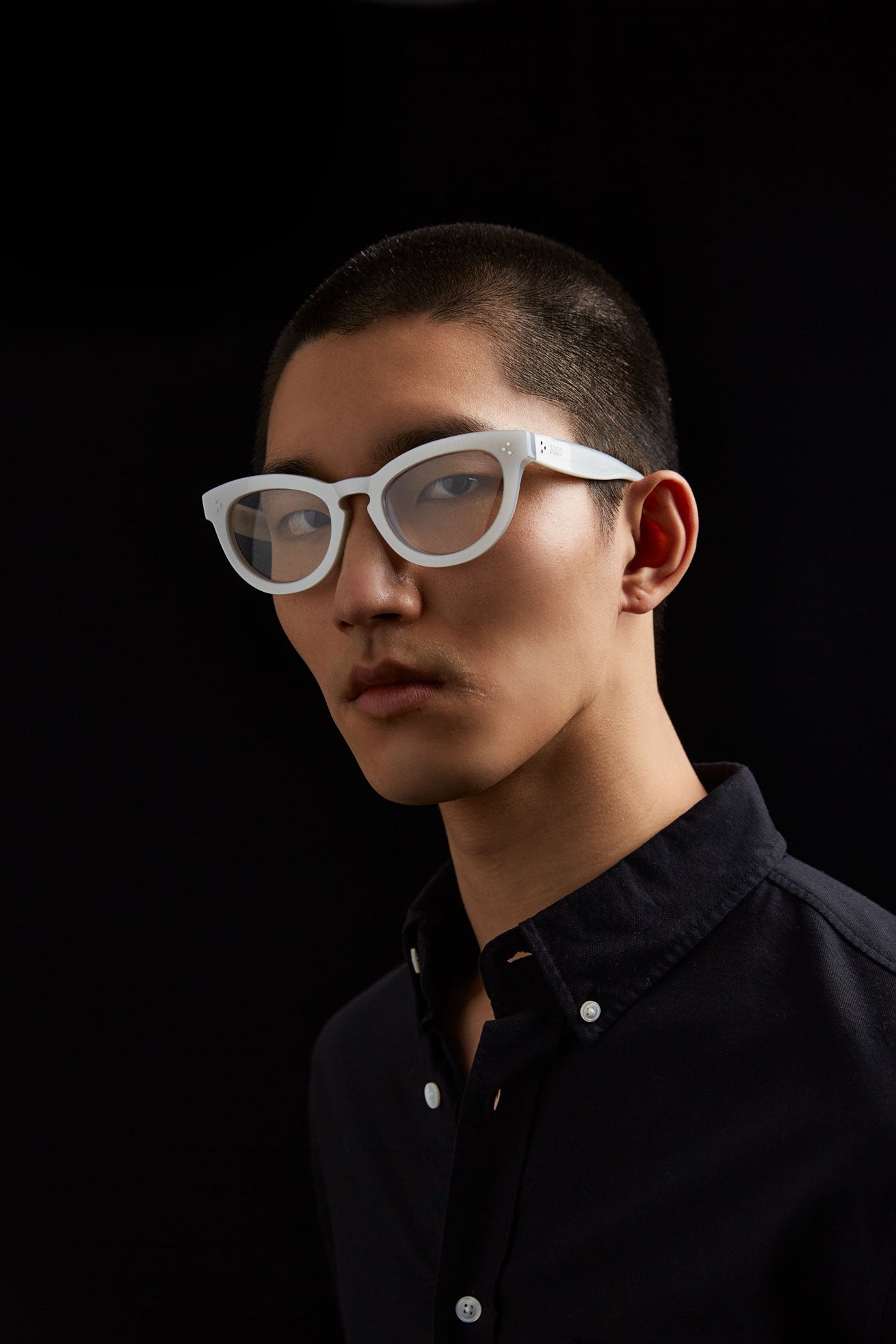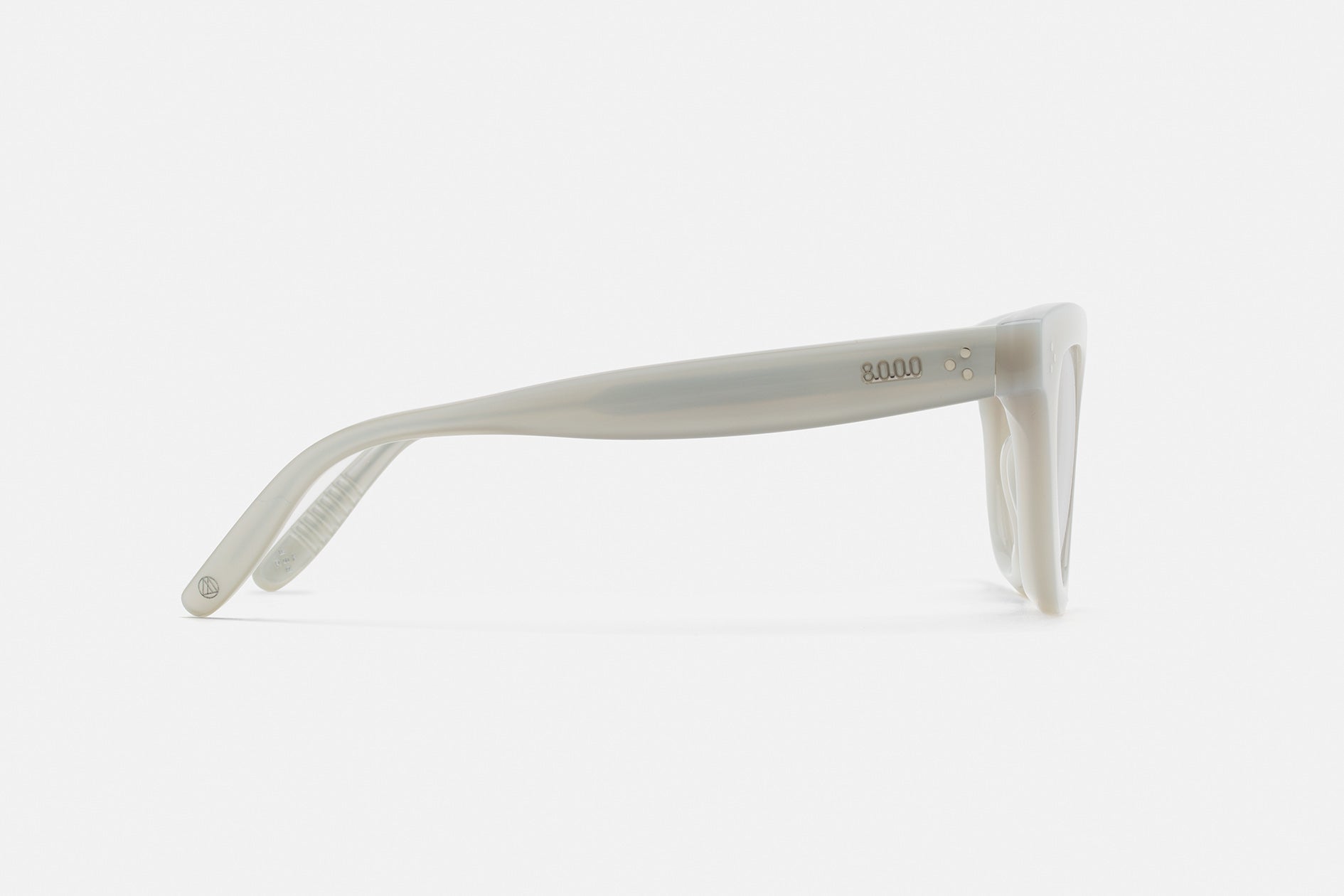 Creado para la marca italoamericana de alta gama Ottomila, Iris es un marco óptico icónico que eleva las formas atemporales de ojo de gato con un toque moderno.Inspiradas en la cultura intelectual de mediados de siglo distintiva de la Nueva York de la posguerra, estas monturas cuentan con bordes gruesos con patillas angulares y un puente nasal en forma de ojo de cerradura.Este diseño clásico se ve realzado por acabados de lujo, como acetato pulido a mano y remaches de metal hechos a mano.Esta versión viene en un acetato blanco nacarado brillante.