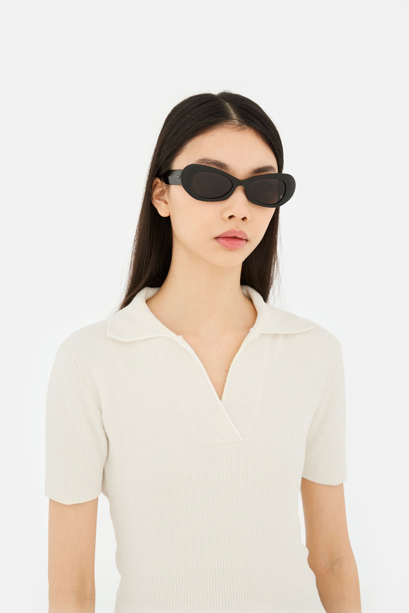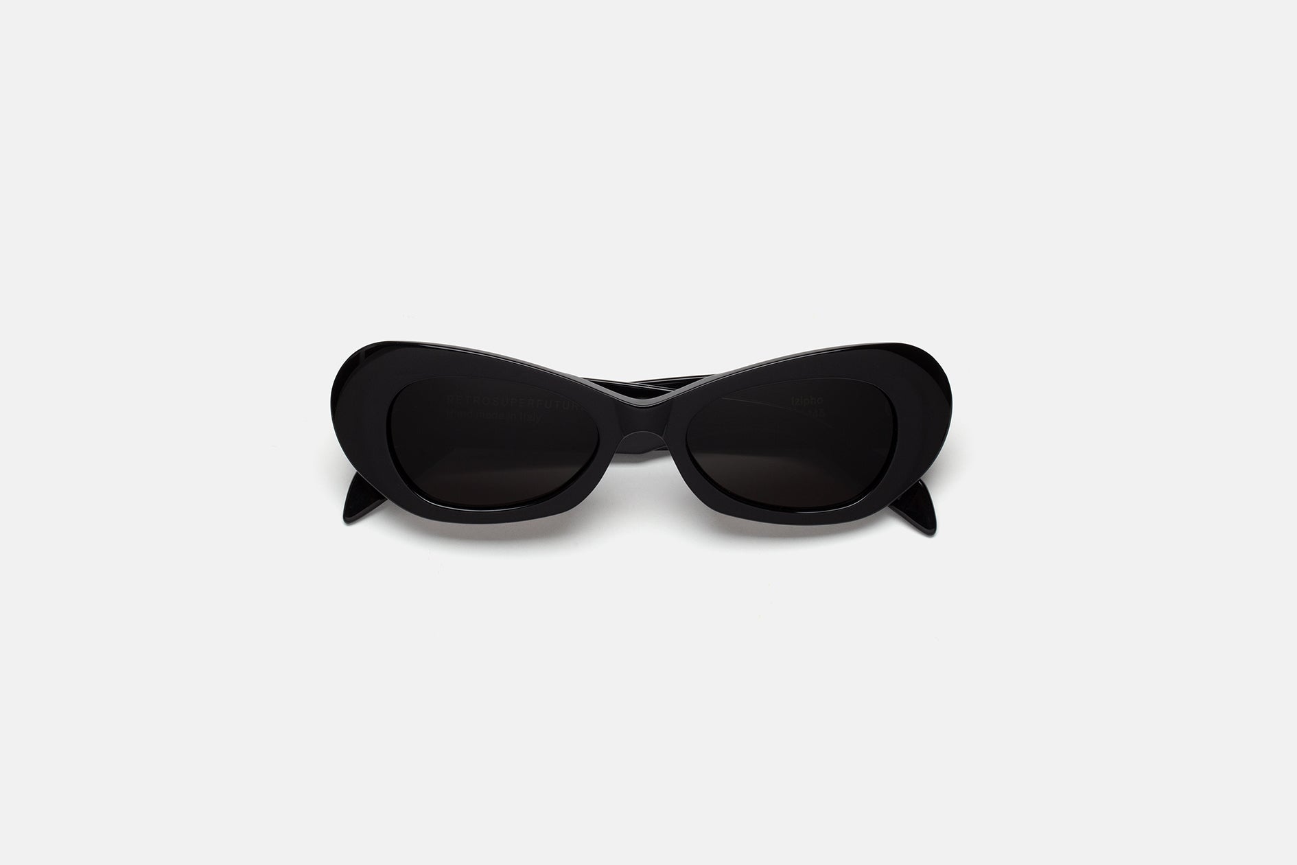 Acetato italiano de alta calidad en un acabado negro atemporal. Lentes Zeiss extra negras de base 6. Gafas de alta gama hechas a mano en Italia.