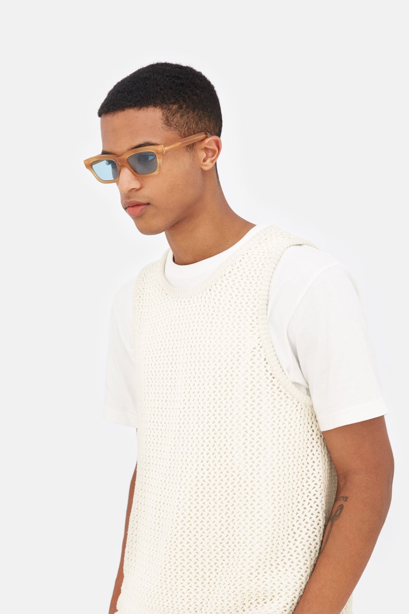 El estilo italiano en su máxima expresión: RSF está profundamente arraigada en la herencia de la moda milanesa, celebrando su rica historia al tiempo que ofrece una visión fresca de la estética contemporánea. Como homenaje a la ciudad y a su estilo, Milano está concebida como una versión más baja y estilizada de las clásicas monturas cuadradas. Su perfil bajo aporta un carácter afilado a la montura, mientras que un arco superior ligeramente curvado añade un toque distintivo para un estilo esencial y un ajuste cómodo. Esta versión se presenta en acetato de color caramelo claro con lentes azules tintadas.