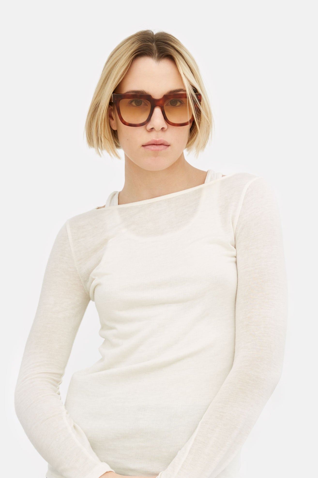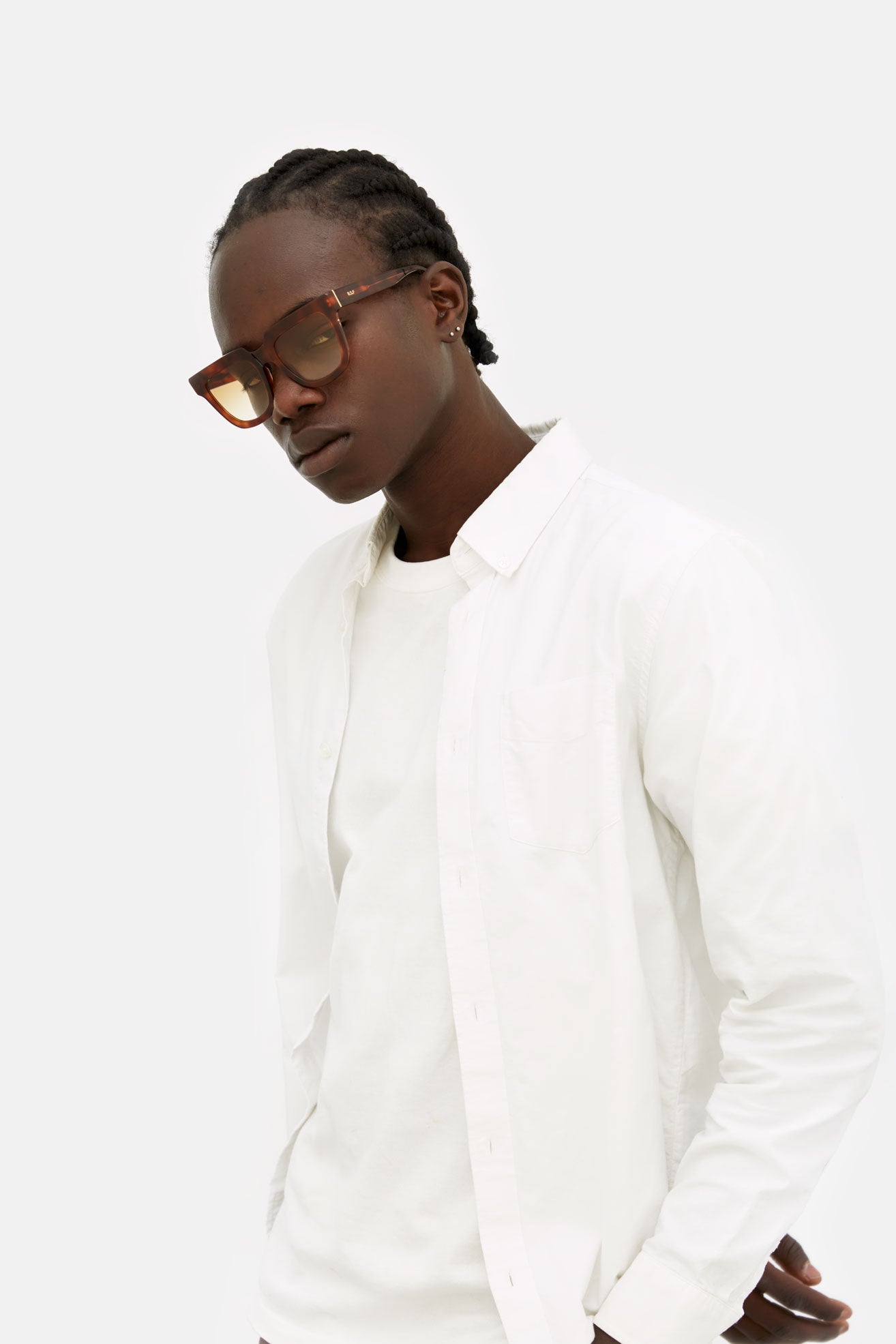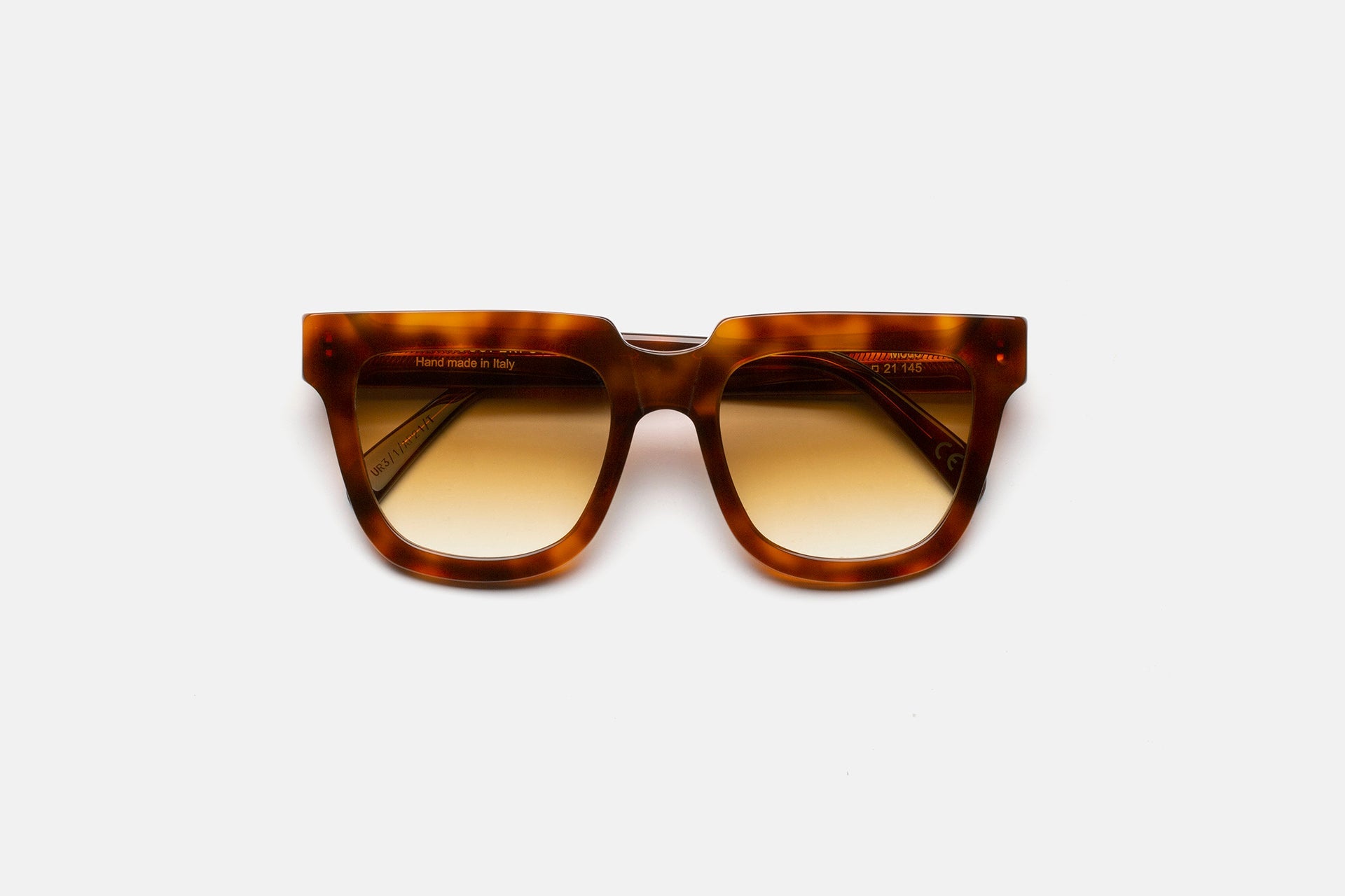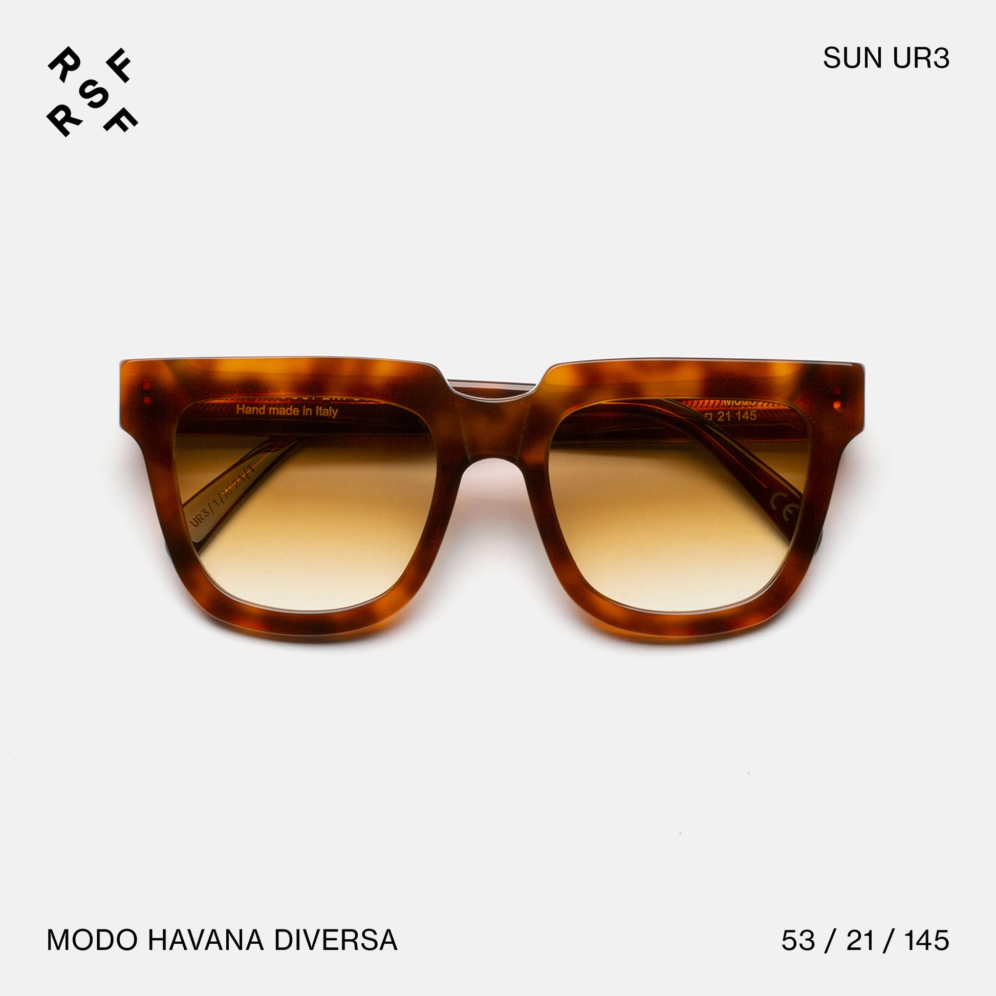 Modo es una pieza de gran tamaño que captura la esencia del glamour italiano: atrevida e icónica pero informal y esencial. Caracterizada por sus lentes cuadradas y sus gruesos bordes, esta silueta se caracteriza por sus líneas limpias y sus detalles cuidadosamente definidos. Modo vuelve a las raíces de RSF, utilizando el excepcional acetato italiano para crear gafas de sol modernas. Esta versión cuenta con un sofisticado acetato rubio habano y cristales tintados en marrón claro.