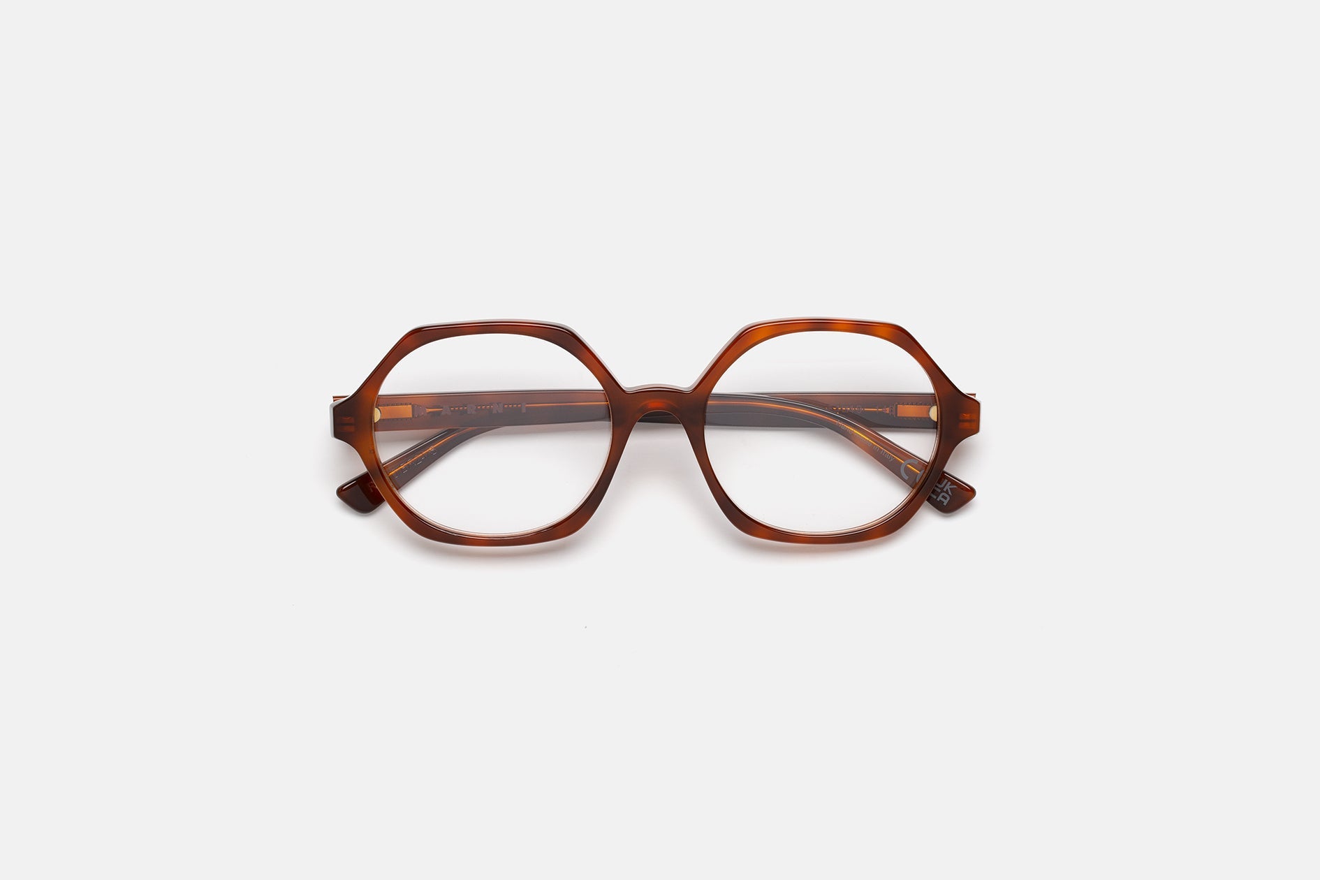 Acetato italiano de alta calidad en un elegante y sofisticado color carey. Lentes transparentes de exposición en la base 4. Lentes graduadas no incluidas. Gafas de alta gama hechas a mano en Italia.