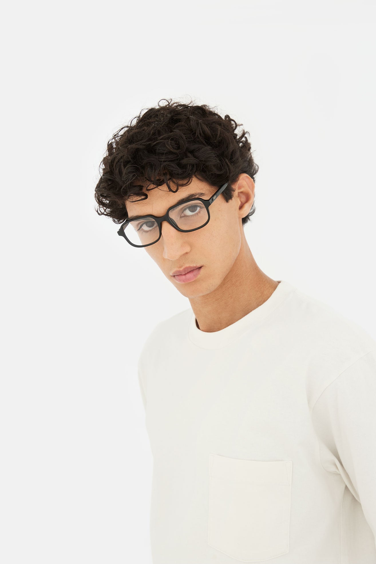 La esencialidad guió el diseño del Numero 05. Su estructura de acetato delgado ultraligera pero duradera crea líneas limpias, diseñadas para el uso diario durante todo el día sin detalles innecesarios. Esta versión del Numero 05 está hecha de un acetato negro brillante atemporal. Las lentes RX no están incluidas, esta pieza monta lentes transparentes de demostración. Hecho a mano en Italia