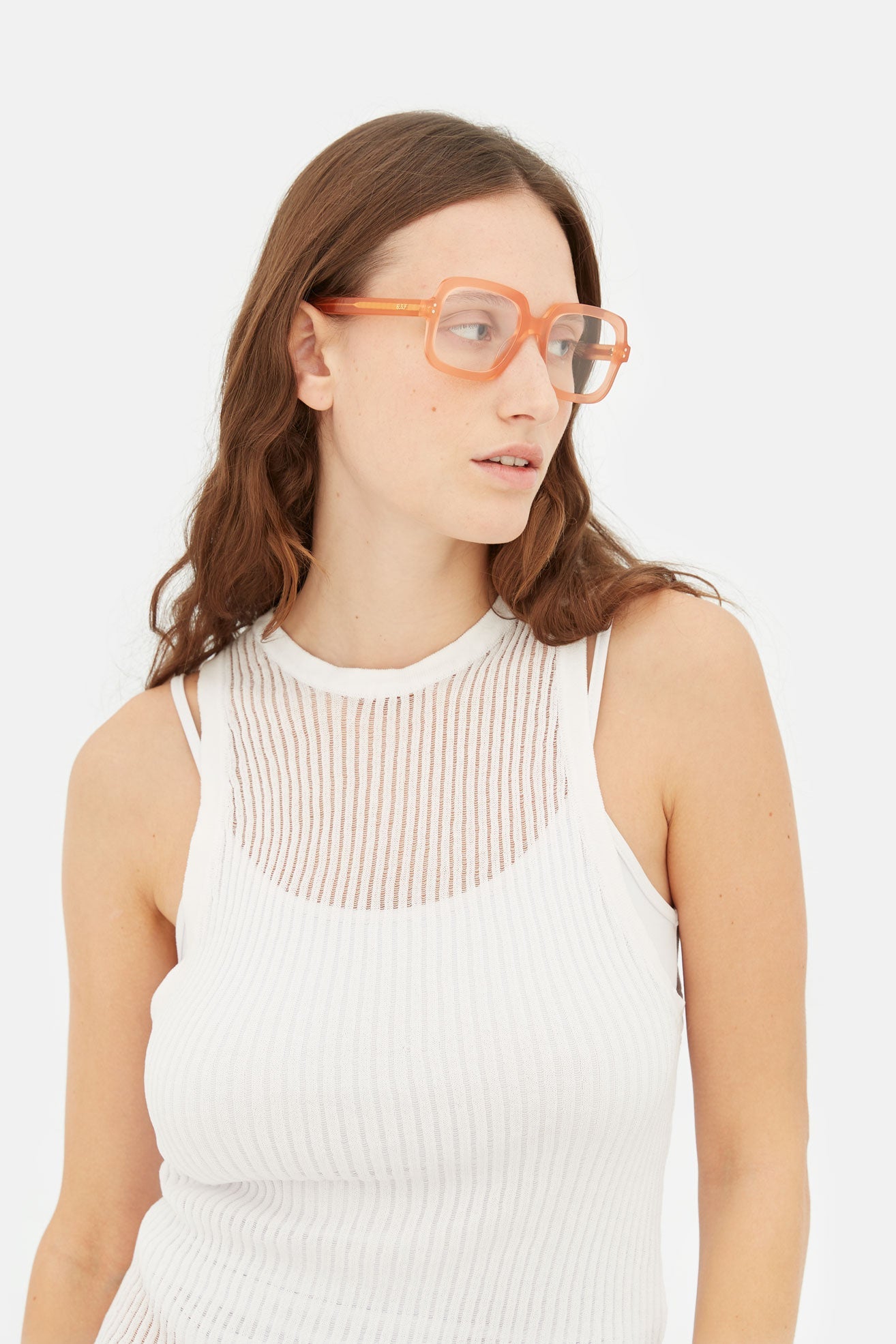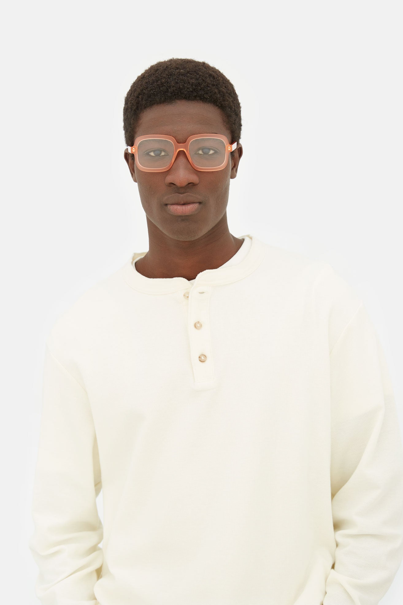 Celebrando los diseños de gran tamaño, atrevidos y juguetones, de los años 70 para las monturas ópticas de uso diario, Numero 103 captura el glamour y el estilo de la década de la música disco, adaptándolo a una visión moderna. Este modelo cuadrado y sobredimensionado cuenta con gruesas llantas de acetato que han sido esculpidas aún más para conseguir ligereza y funcionalidad en el uso diario. Numero 103 está diseñado para aquellos que buscan destacar en el ajetreado paisaje. Esta versión se presenta en un inesperado acetato de color óxido.