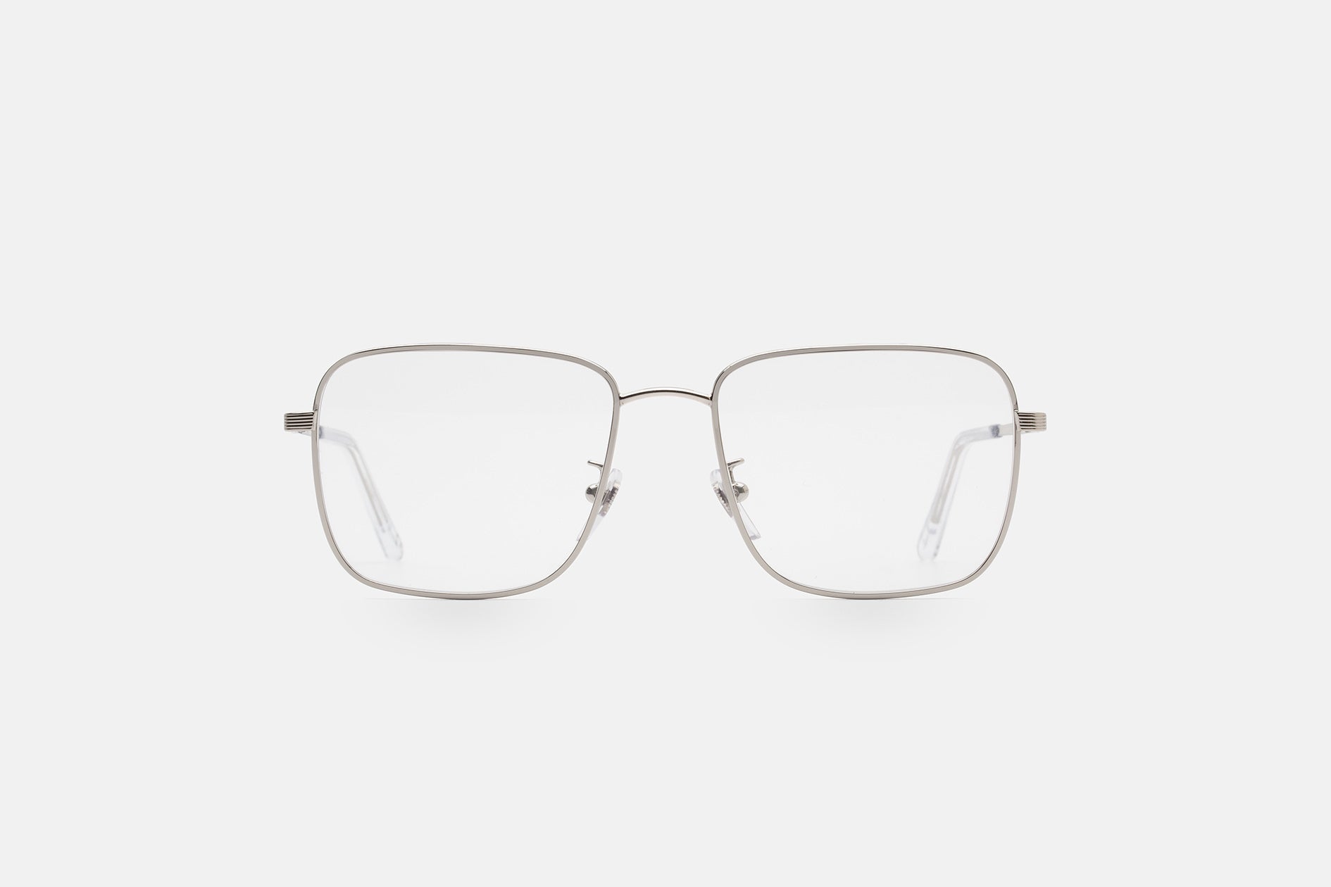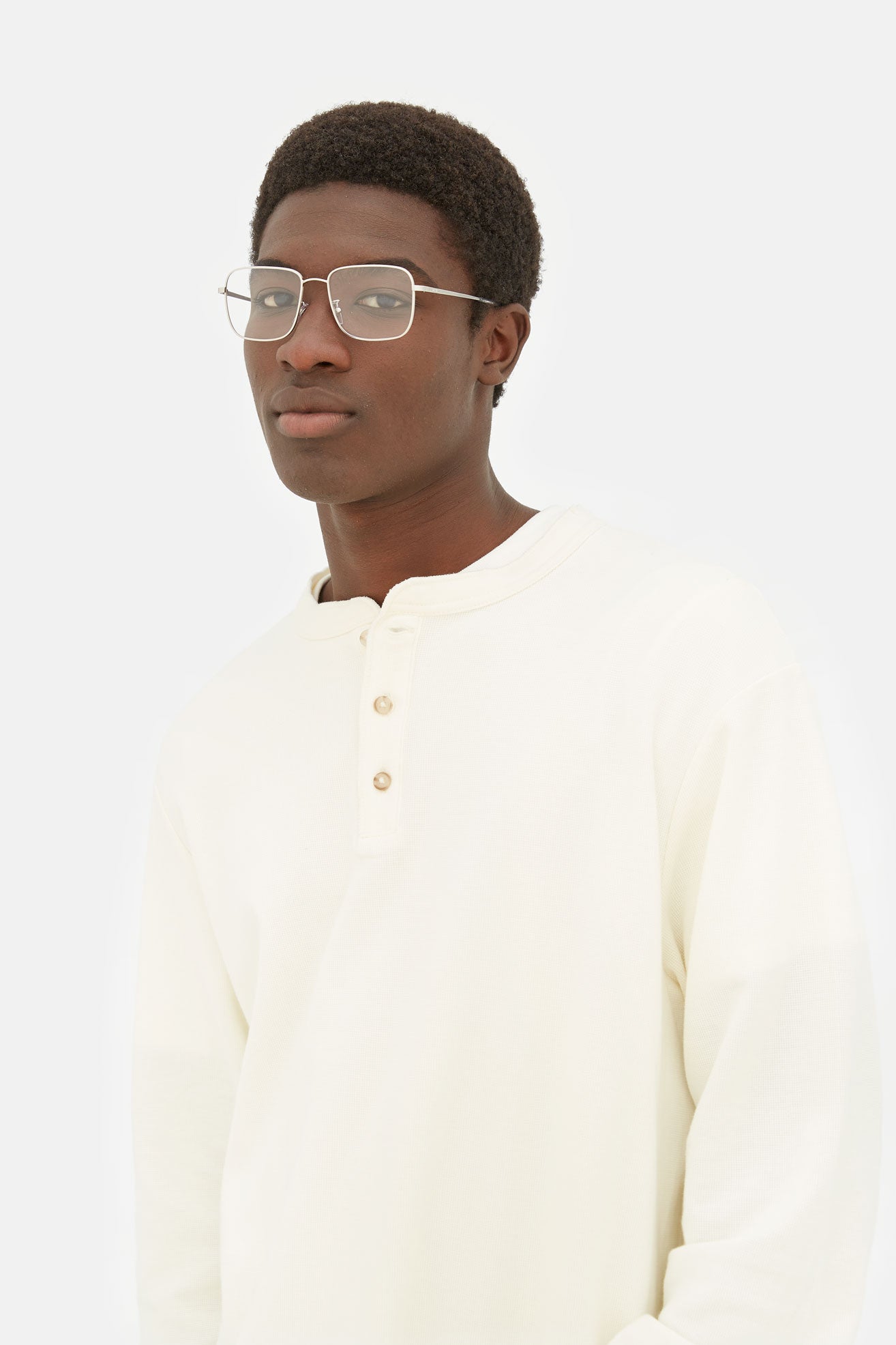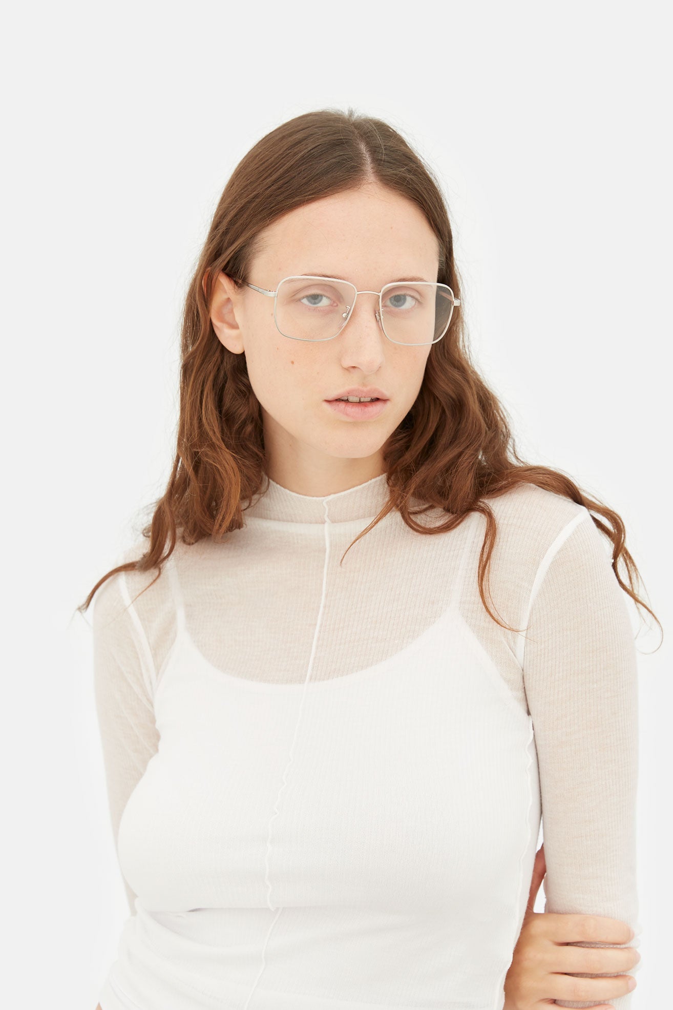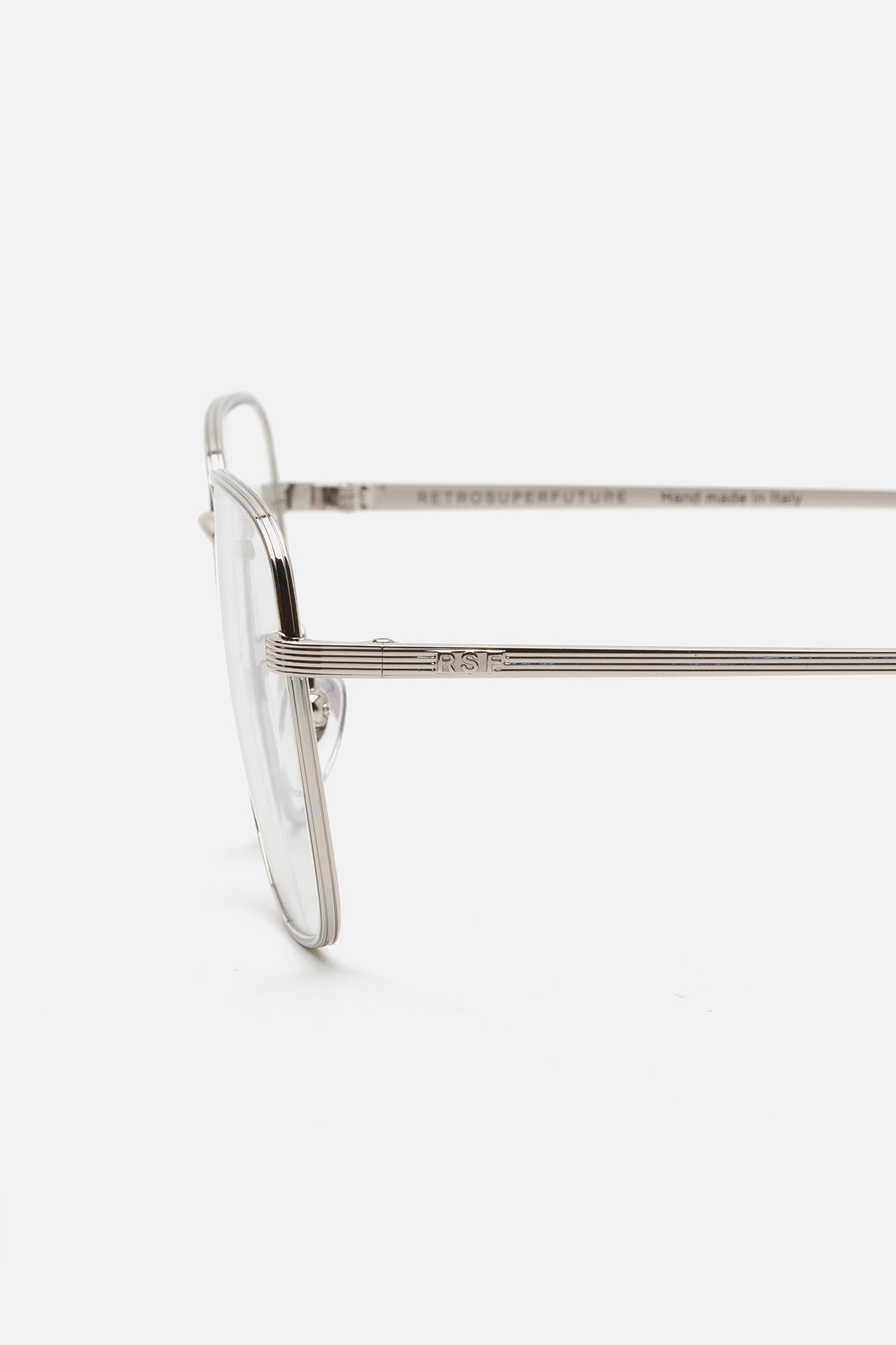 Numero 105 es una elegante silueta metálica, caracterizada por un diseño esencial pero característico. El modelo ha sido concebido como una forma metálica de gran tamaño pero aerodinámica para el día a día, con unas determinadas lentes cuadradas encerradas en unos robustos aros metálicos. Las patillas únicas, moldeadas exclusivamente para la colección de RSF, confieren al modelo un carácter arquitectónico distintivo. Esta versión se presenta en metal plateado brillante con elegantes puntas de patillas de acetato para un uso cómodo durante todo el día.
