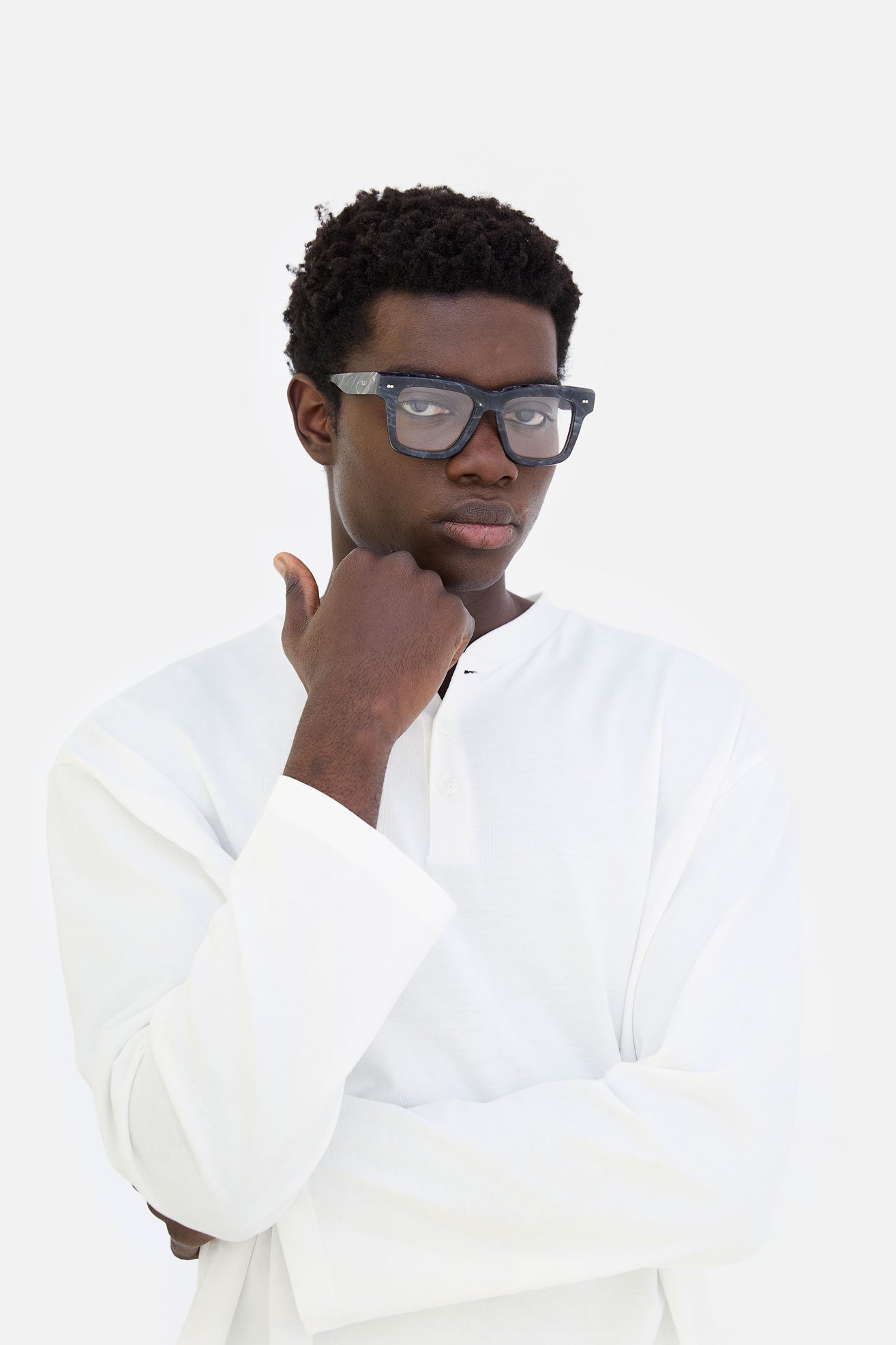 Numero 116 es una atrevida montura óptica caracterizada por un diseño de gran tamaño que reinterpreta las formas icónicas del sol para el uso diario. El modelo presenta resistentes aros de acetato, una característica clave de las gafas RSF, cincelados para brindar ligereza y comodidad, sin comprometer su estructura gruesa. Este es un modelo diseñado para aquellos que buscan unas gafas llamativas pero atemporales. Esta versión viene con un patrón de acetato color piedra.