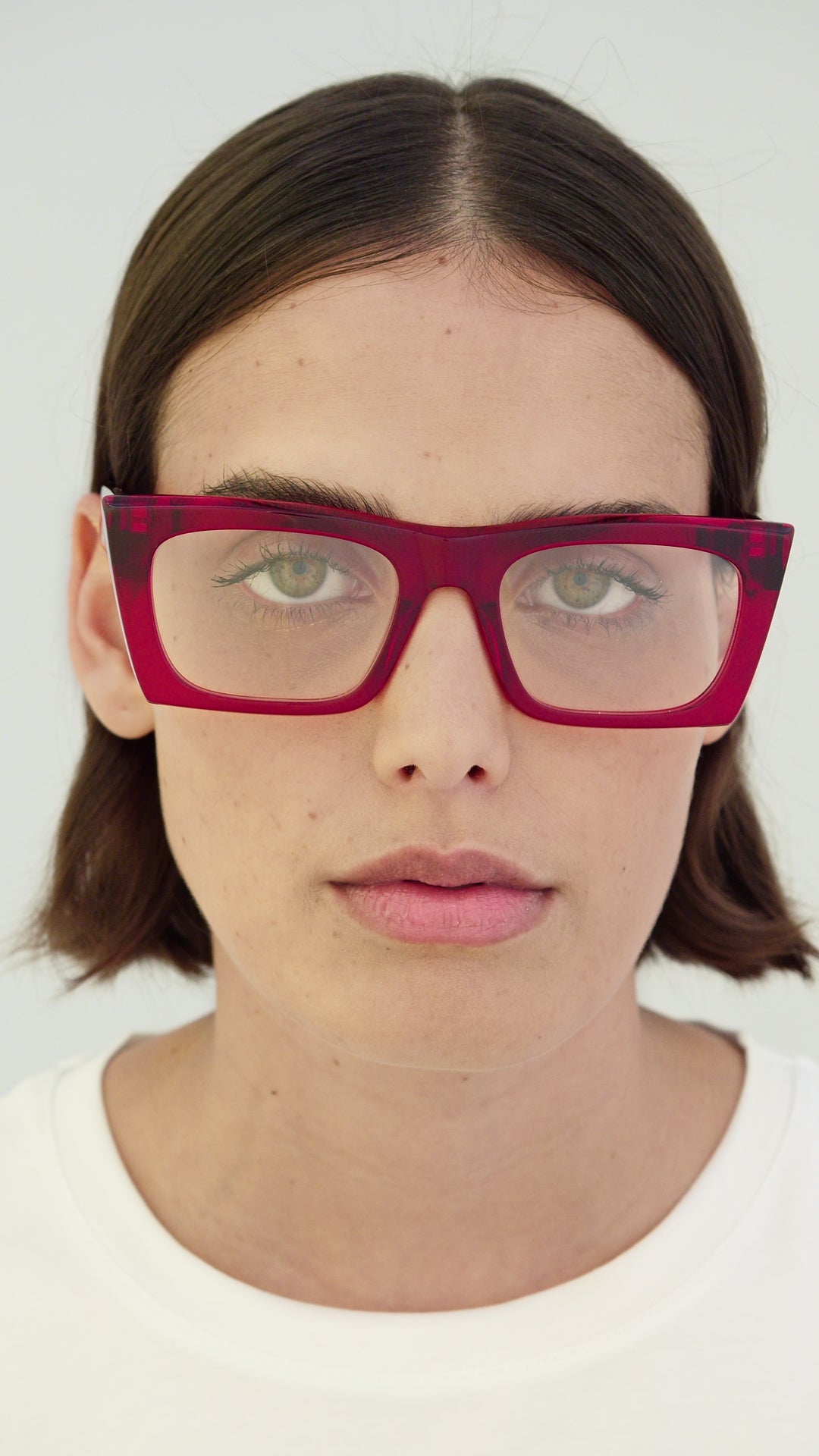Numero 117 es una gafa de uso diario con carácter. El modelo presenta un perfil angular y afilado, con detalles puntiagudos en las patillas que le dan el aspecto destacado característico que tiene. Con un diseño compacto y resistente, Numero 117 tiene una silueta elegante pero divertida con un toque urbano. Este modelo se presenta en un acetato de color rojo intenso que resalta sus rasgos afilados.
