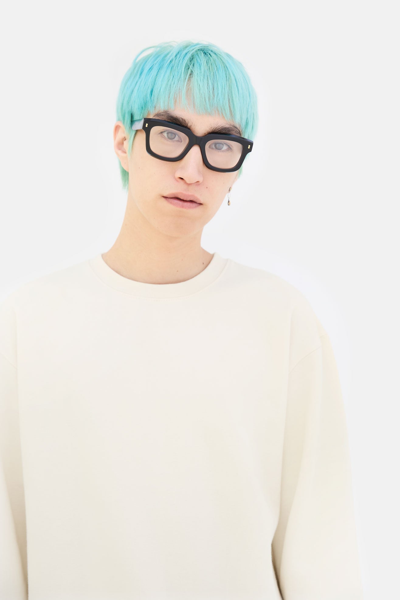 Numero 118 es una silueta única que reinterpreta monturas vintage atemporales con un diseño fresco y contemporáneo. Caracterizado por llantas gruesas y resistentes, el modelo presenta dos tachuelas en las patillas y un puente nasal en forma de cerradura, en referencia a las formas de los años 50. Sus proporciones atrevidas y lentes de gran tamaño actualizan esta forma clásica para lograr una estética moderna y nítida. Esta silueta viene en acetato negro brillante con detalles dorados.