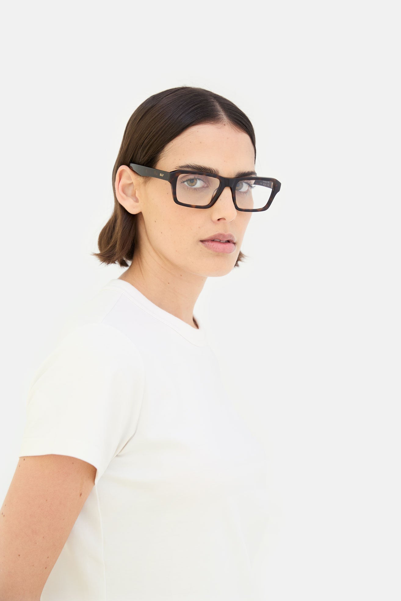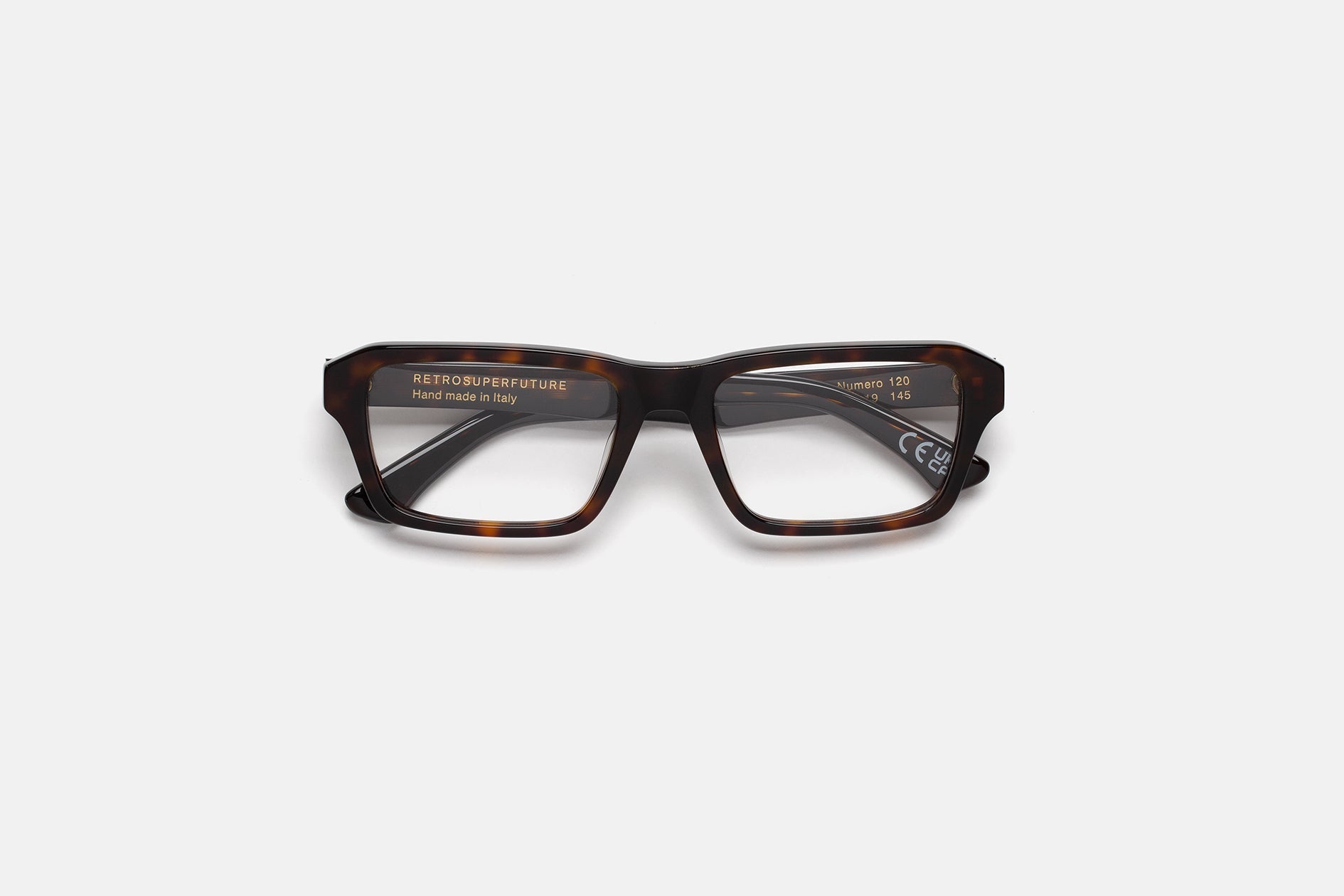 Numero 120 es un diseño rectangular de baja altura que se caracteriza por su diseño geométrico con ángulos romos.El modelo enfatiza una estética moderna distintiva, con una estructura de acetato resistente al tiempo que mantiene un ajuste cómodo adecuado para el uso diario durante todo el día.Esta versión del Numero 120 está disponible en un elegante acetato habano oscuro.