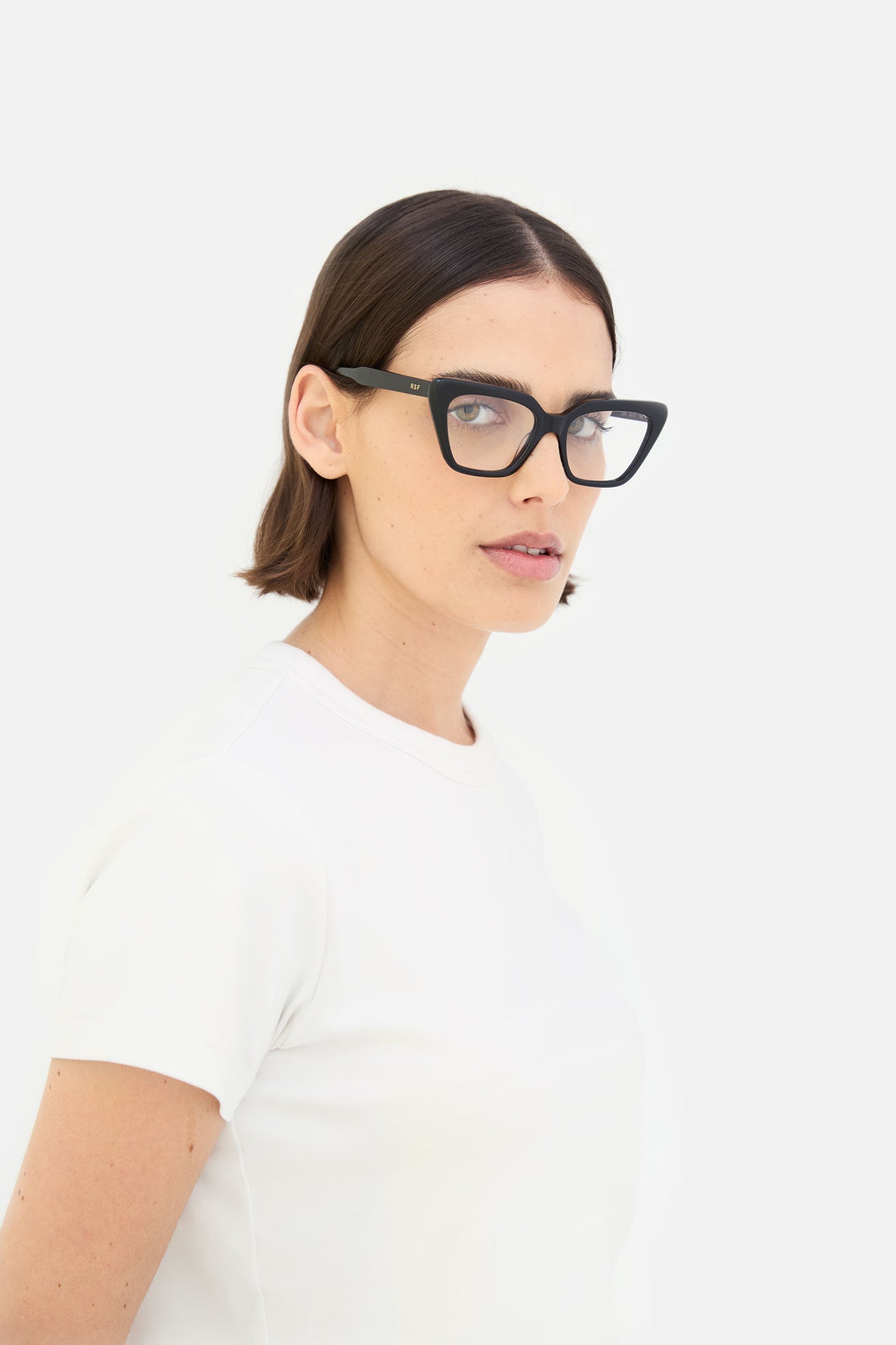 Numero 122 es una silueta divertida concebida para usarse todos los días.El modelo está diseñado para todos aquellos que quieren salir de la zona de confort pero manteniendo los pies en la tierra.Presenta una montura de acetato tipo ojo de gato, ligera, delgada y elegante.Esta versión de Numero 122 está disponible en un atemporal acetato negro.