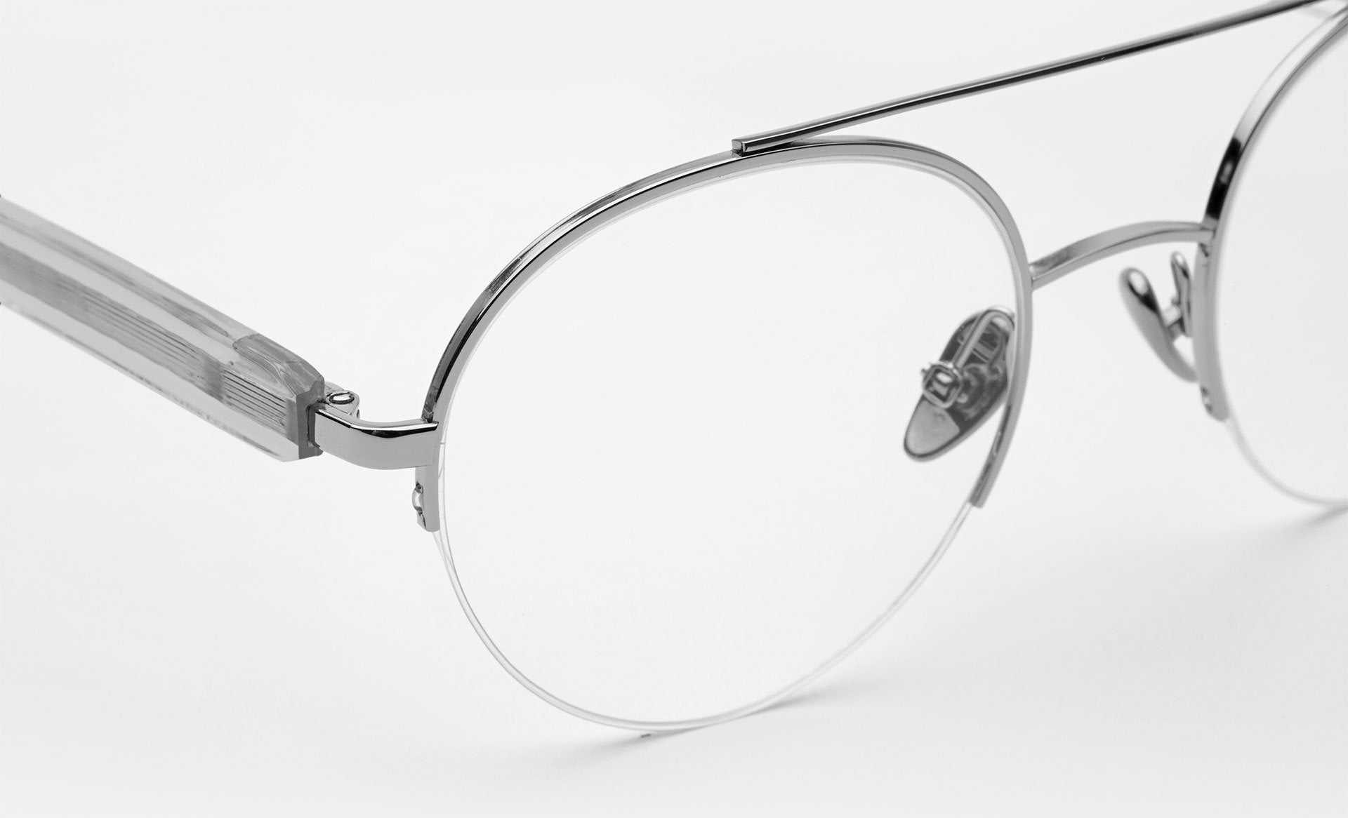 Diseñado para la colección Primavera/Verano 2017, Numero 24 Argentoes una pieza inspirada en un estilo retro de gafas que fue adaptado al uso contemporáneo. Esta silueta está hecha en acetato Crystal y piezas metálicas en plata que proporcionan la máxima calidad requerida para el uso diario. Lentes de receta no incluidos.