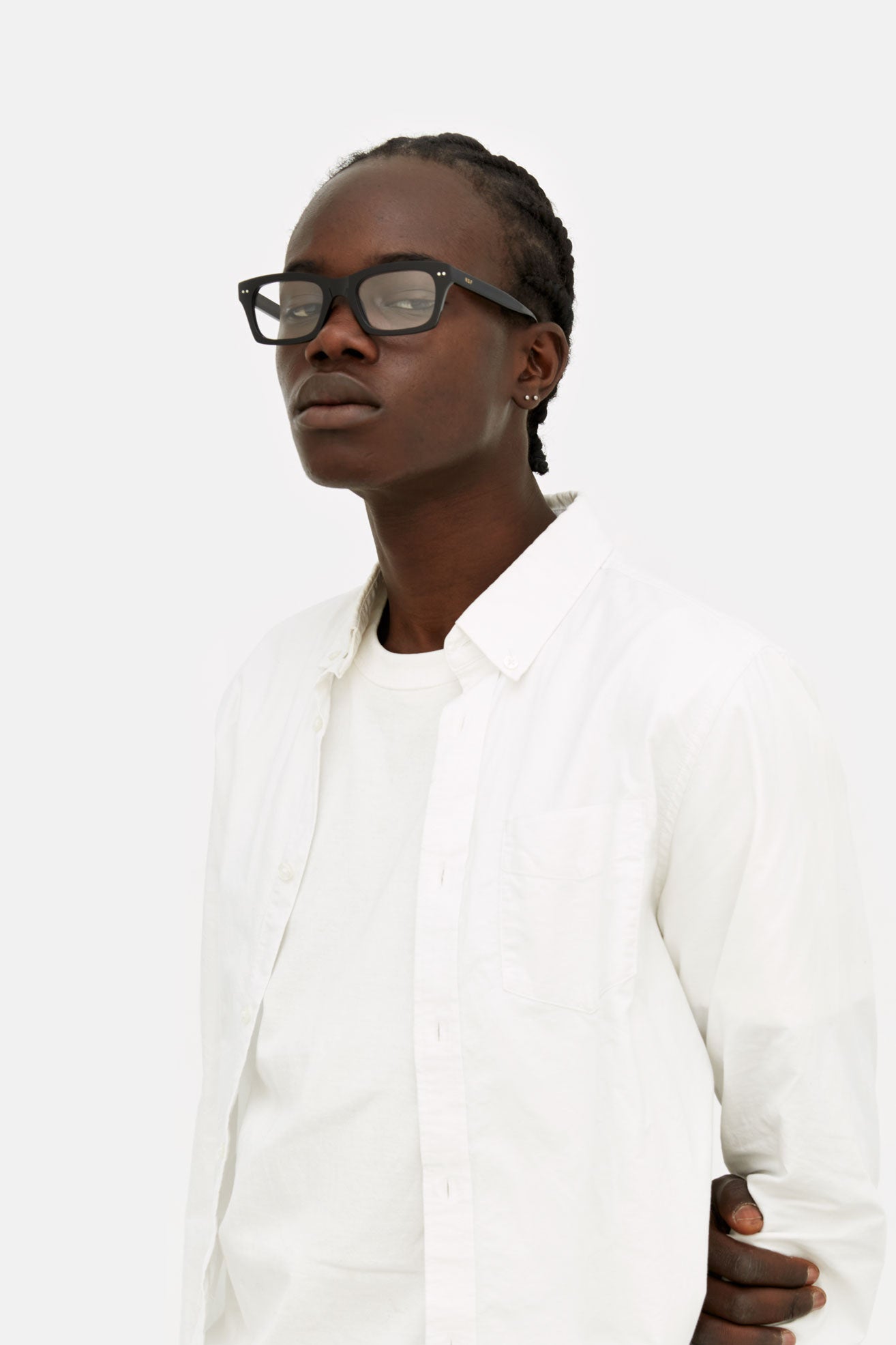 Numero 95 es una pieza esencial de gafas concebida como un elemento básico para el día a día, pero con un marcado carácter callejero. Su montura maciza cuidadosamente tallada, con una cómoda montura nasal y robustos bordes de acetato, permite que esta forma sea adecuada tanto para un estilo cotidiano más formal como para un enfoque urbano informal. Este modelo se presenta en acetato negro brillante.