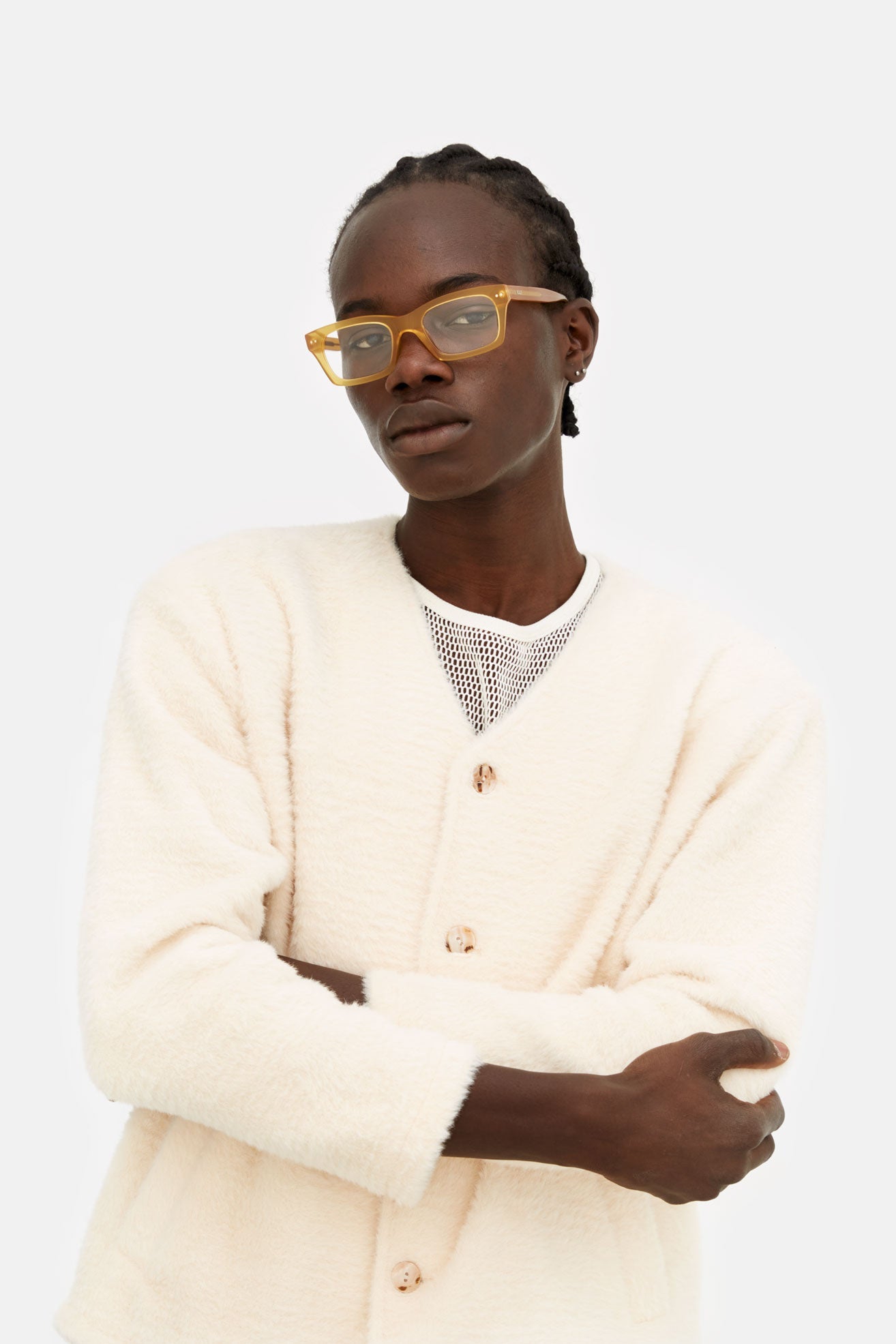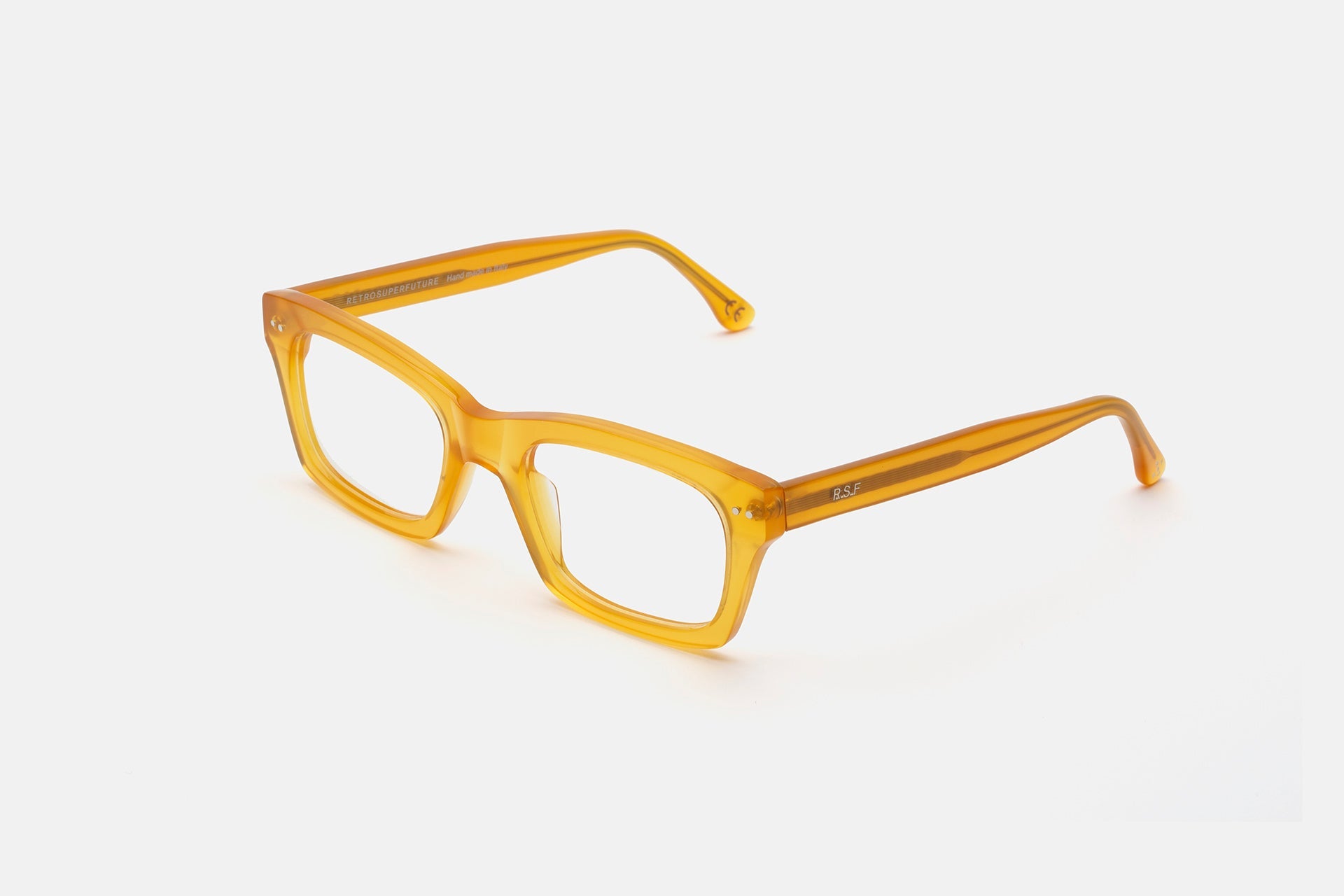 Numero 95 es una pieza esencial de gafas concebida como un elemento básico para el día a día, pero con un marcado carácter callejero. Su montura maciza cuidadosamente tallada, con una cómoda montura nasal y robustos bordes de acetato, permite que esta forma sea adecuada tanto para un estilo cotidiano más formal como para un enfoque urbano informal. Este modelo se presenta en acetato de color miel.