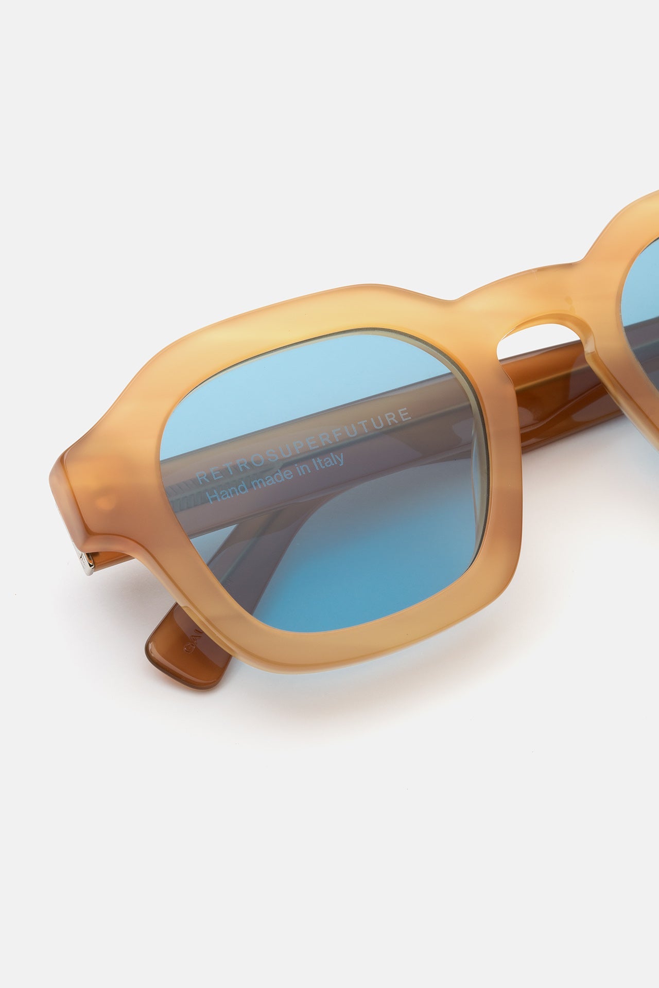 Saluto es una silueta elegante que subraya la comprensión del estilo atemporal: a la vez familiar y esencial, pero manteniendo la frescura y la contemporaneidad, este modelo está concebido como un verdadero clásico instantáneo. Una versión más sofisticada de las conocidas formas redondeadas y ajustadas, Saluto presenta un diseño hexagonal con una línea de cejas elevada para un ajuste ligeramente sobredimensionado. Un icono audaz pero discreto para el siglo XXI, Saluto se presenta en un acabado beige arena con lentes azules tintadas.