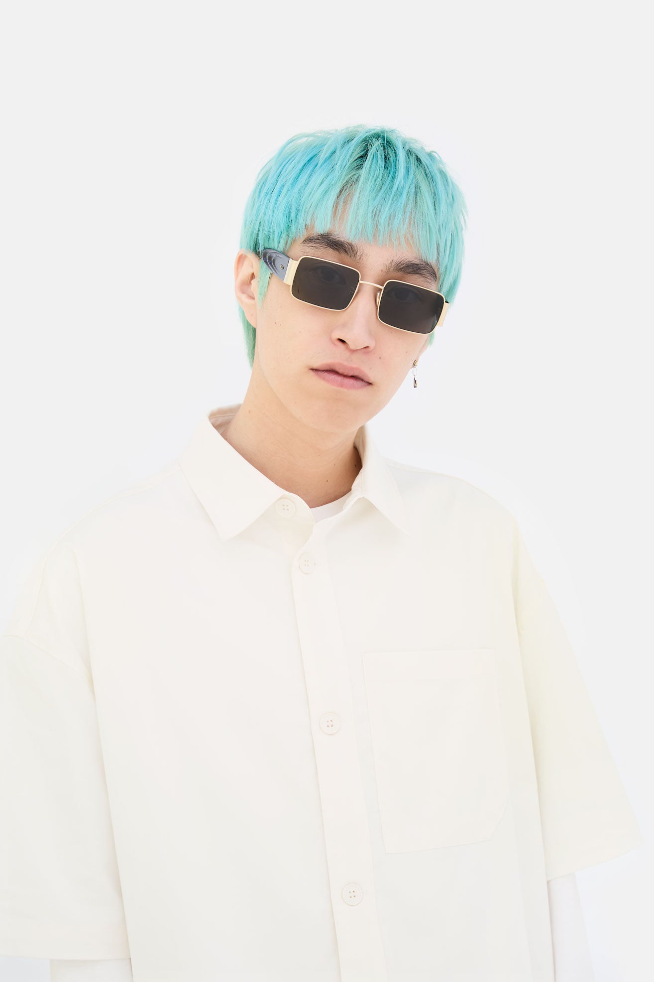Z es suave. Sus lentes rectangulares esenciales están encerradas dentro de marcos de metal delgados pero resistentes que se envuelven en gruesas placas de metal para acomodar las altas varillas de acetato. Para contrarrestar este diseño esencial, casi minimalista, el Z presenta un toque orgánico único con una patilla de acetato termoformado con detalles que se asemejan a un anillo licuado de Saturno. Esta versión viene en acabado dorado con acetato negro atemporal y lentes a juego.